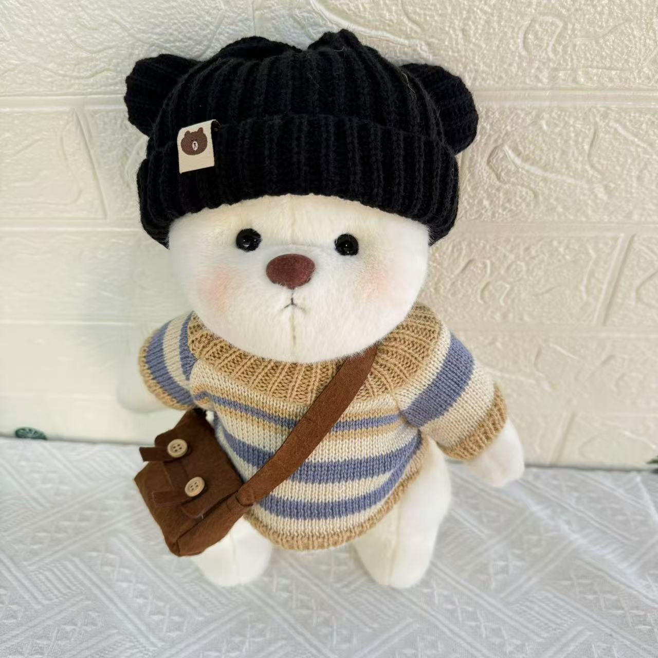 • 검은색 스웨터 모자 + 스트라이프 스웨터 + 크로스백 (곰 인형 미포함)