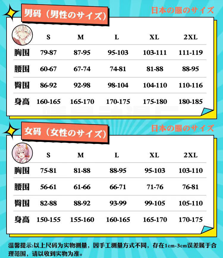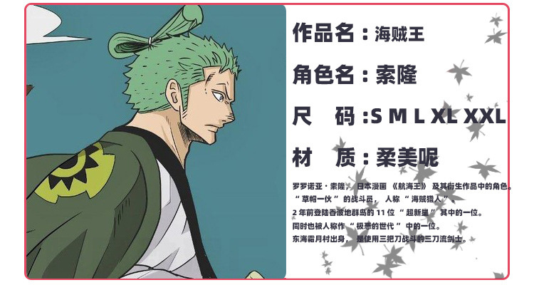 • 조로 기모노 아동용 사이즈 (겉옷 + 속옷 + 허리띠)