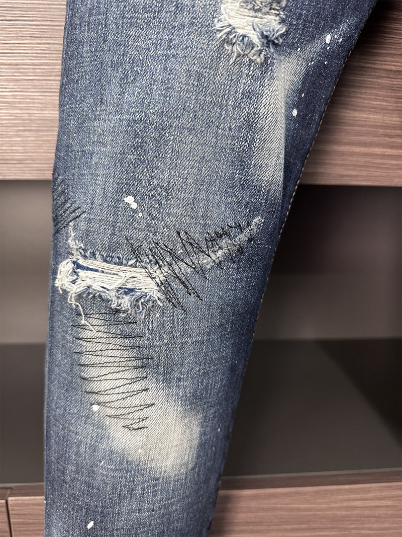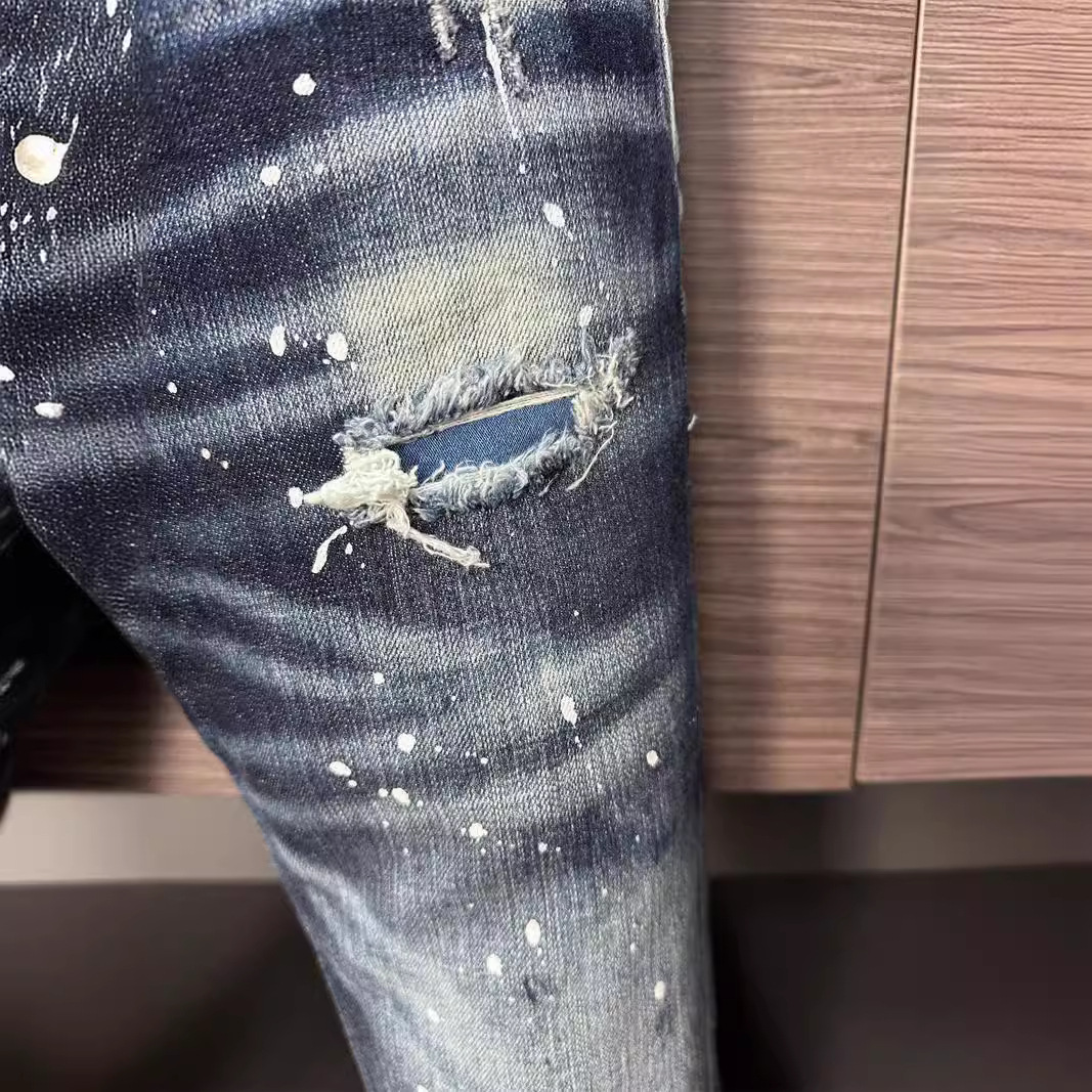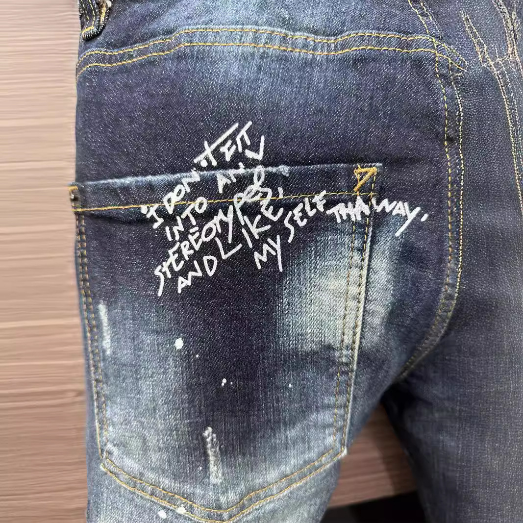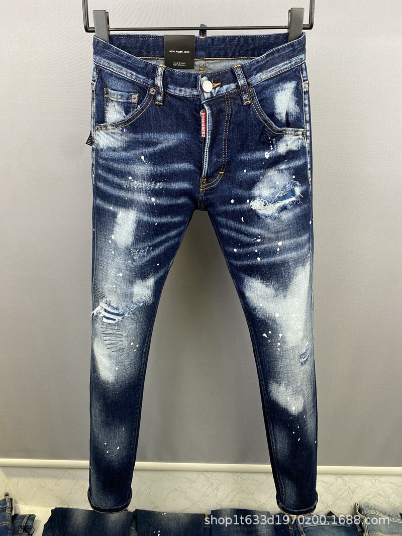 9837 2023D2 남성용 데님 바지 4 차 인쇄 페인트 화이트 작은 직선 다리 크로스 보더 트렌디 청바지스토어 가기