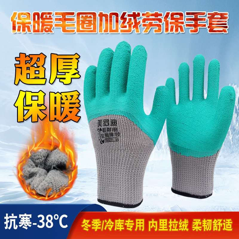 겨울용 보온 장갑 건설 현장 공장용 두꺼운 라텍스 폼 300 # 강화된 손가락 부분에 고무가 코팅된 벨벳 보호 장갑스토어 가기