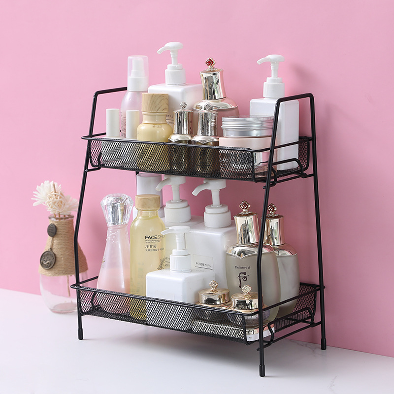 다기능 이중층 정리 수납 선반 북유럽 스타일 철제 책상 데스크탑 화장품 정리대