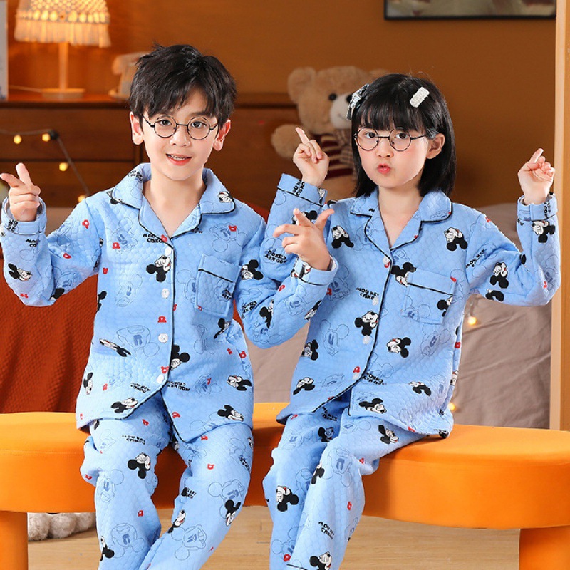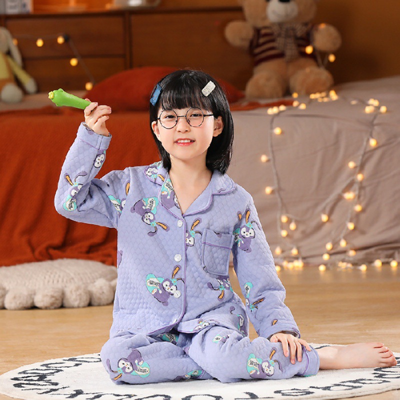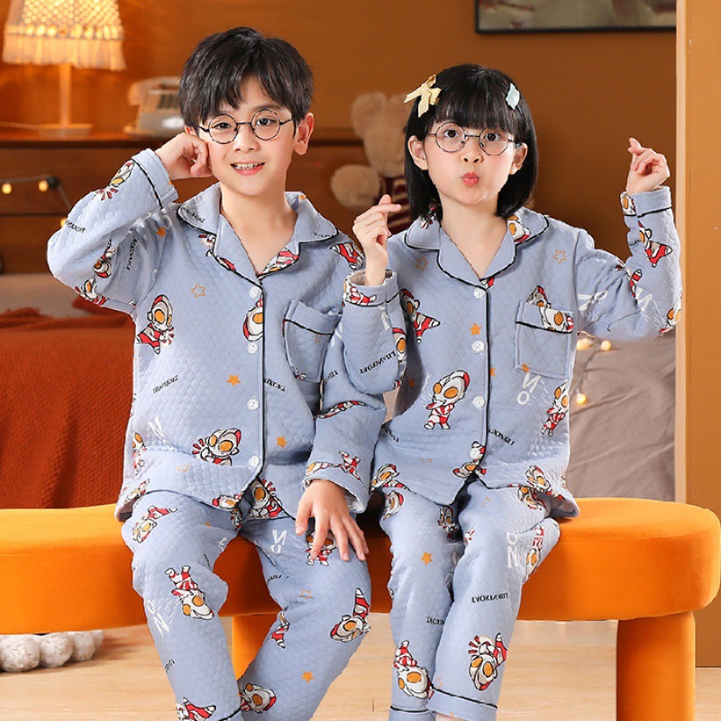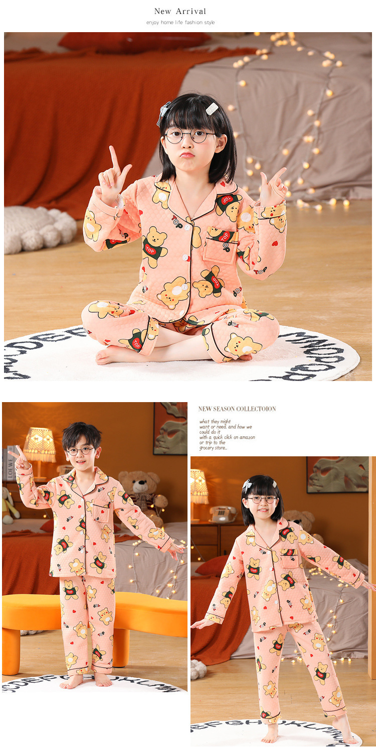 누비 이불 두꺼운 어린이 잠옷 열 속옷 세트 여아 가을 옷 가을 바지 소년 겨울 중대형 어린이 가정 의류