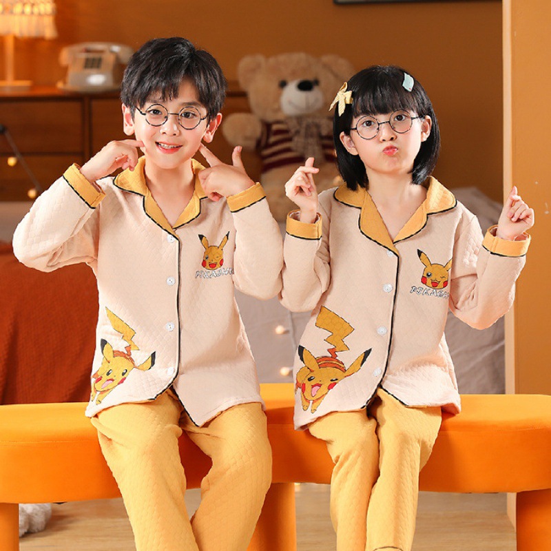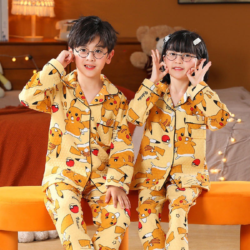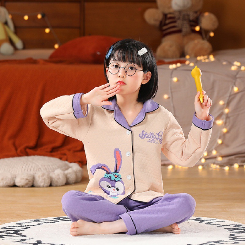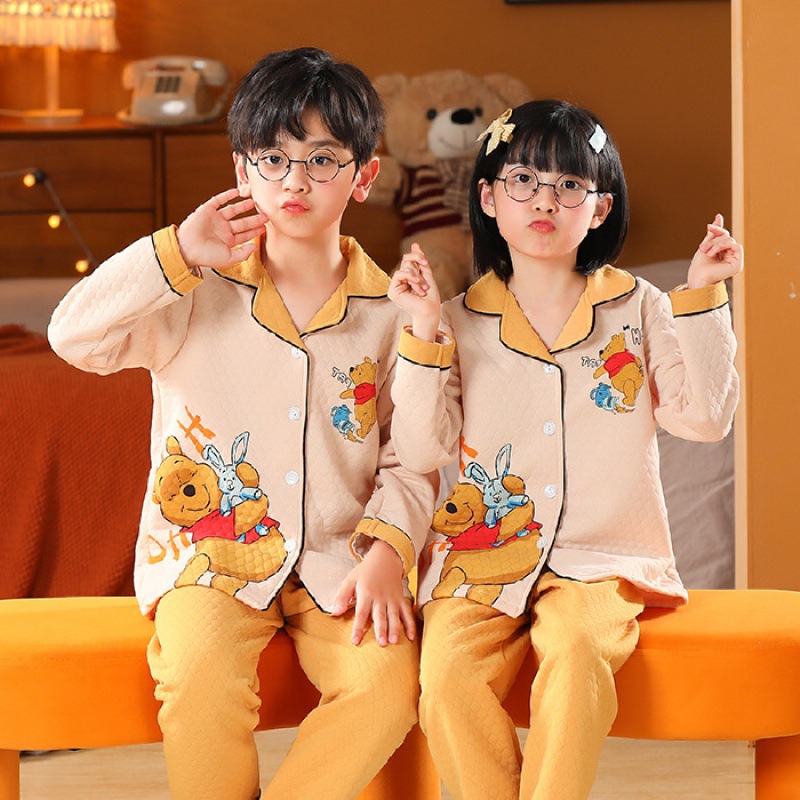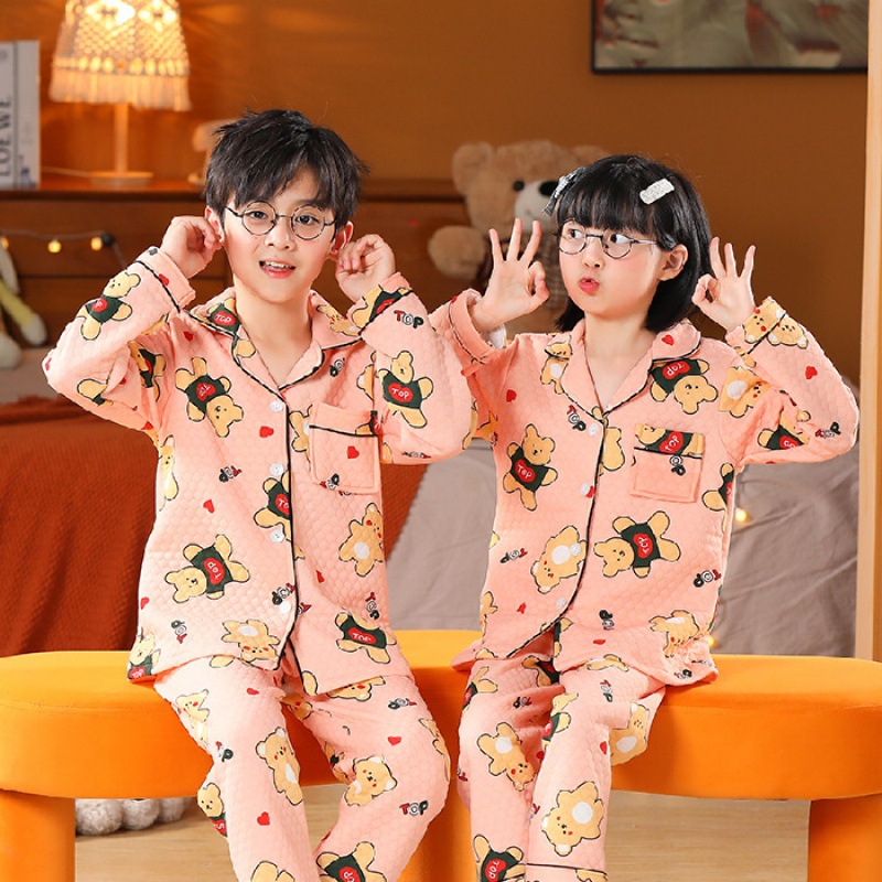 누비 이불 두꺼운 어린이 잠옷 열 속옷 세트 여아 가을 옷 가을 바지 소년 겨울 중대형 어린이 가정 의류