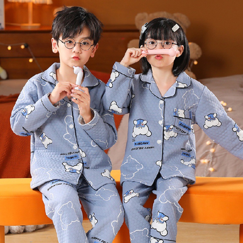 누비 이불 두꺼운 어린이 잠옷 열 속옷 세트 여아 가을 옷 가을 바지 소년 겨울 중대형 어린이 가정 의류스토어 가기