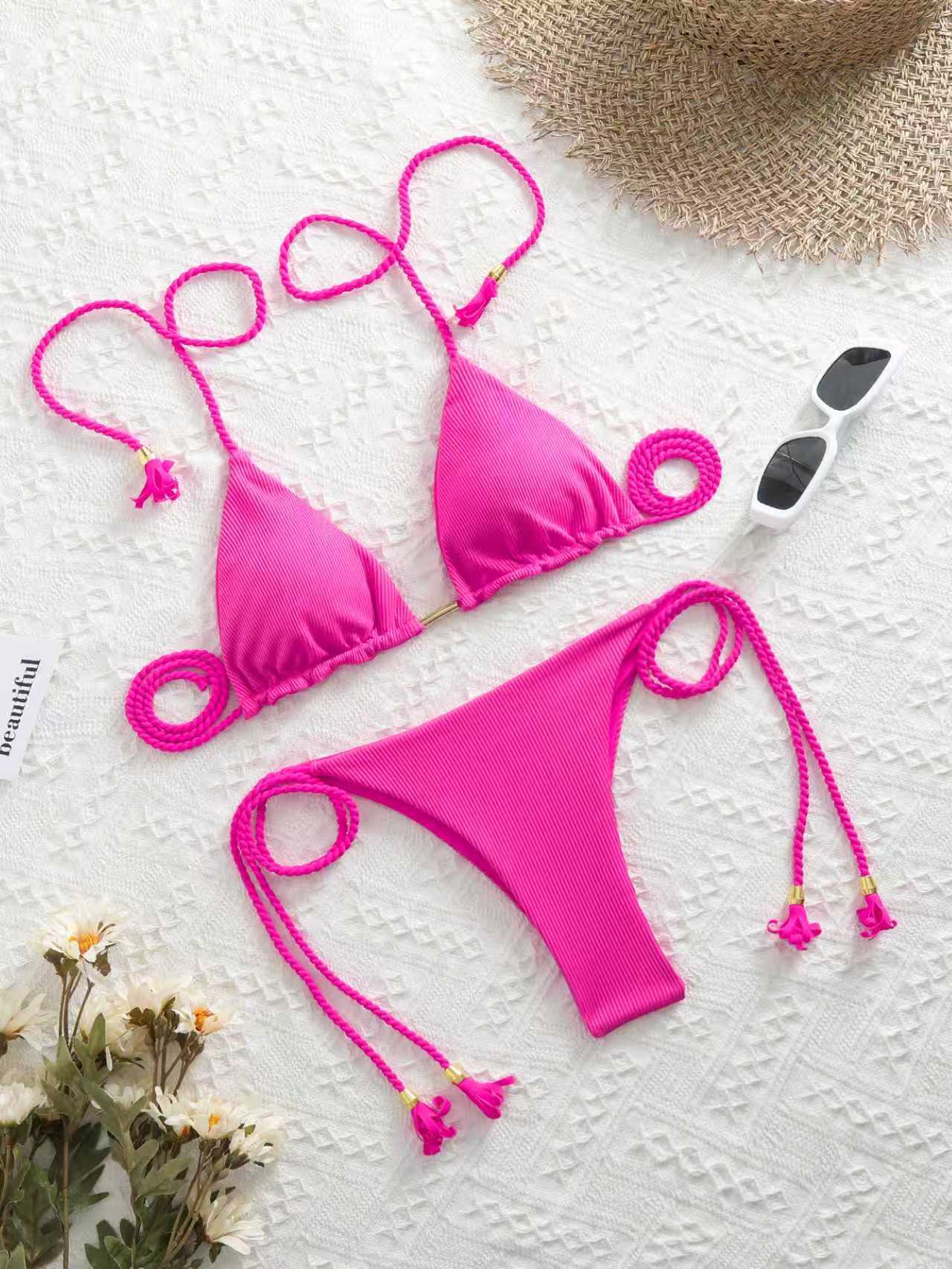 유럽 및 미국 수출 신상 섹시 휴가 비키니 온천 분리형 단색 수영복 섹시 멀티 컬러 끈 비키니