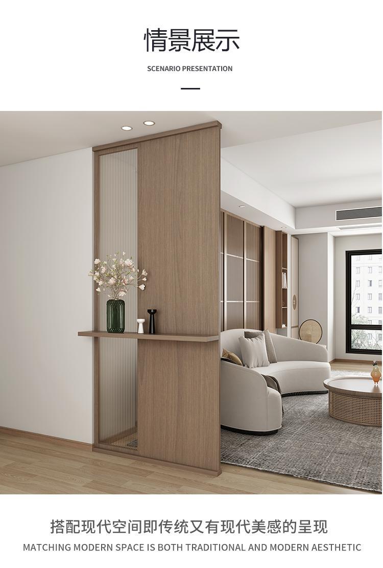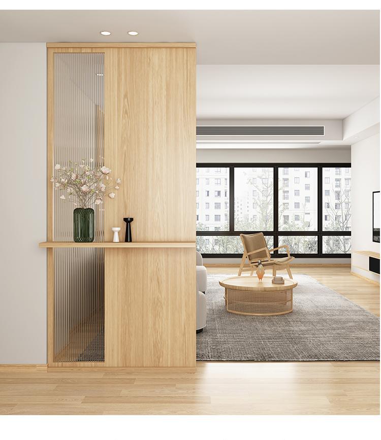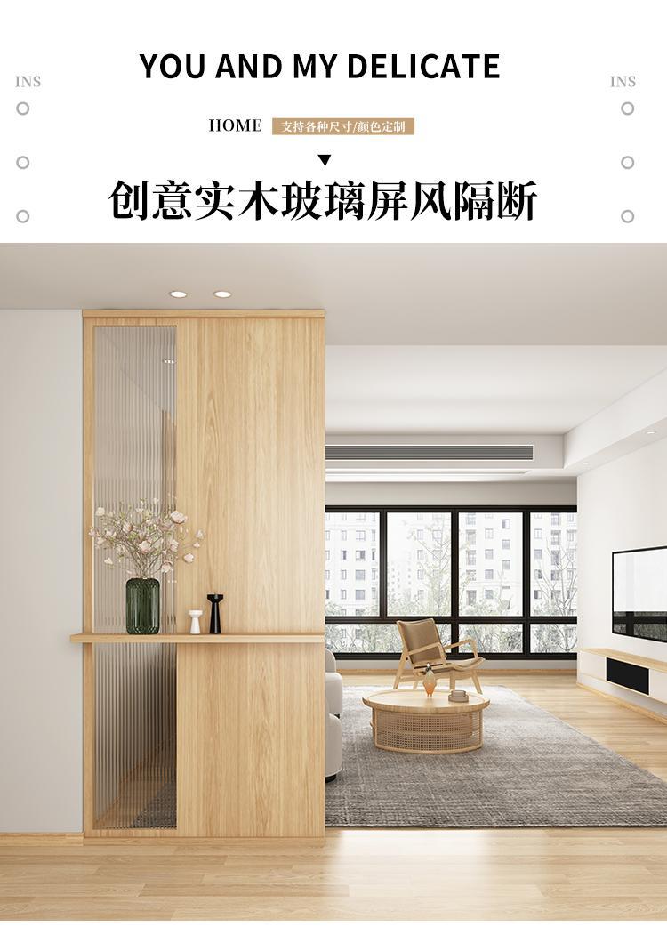 현관 거실 칸막이, 실내 차폐용 원목 초백색 장홍유리 스크린, 원목 창의적 디자인 강화유리스토어 가기