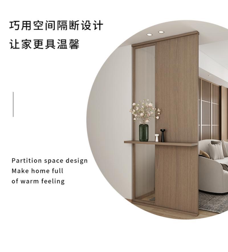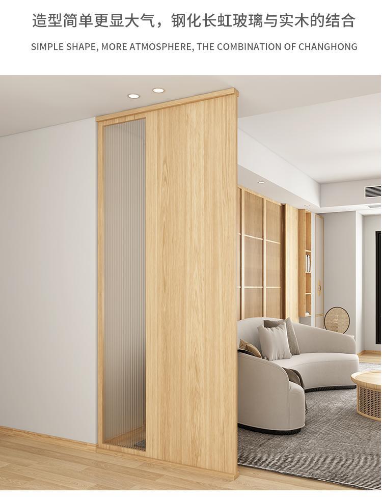 현관 거실 칸막이, 실내 차폐용 원목 초백색 장홍유리 스크린, 원목 창의적 디자인 강화유리