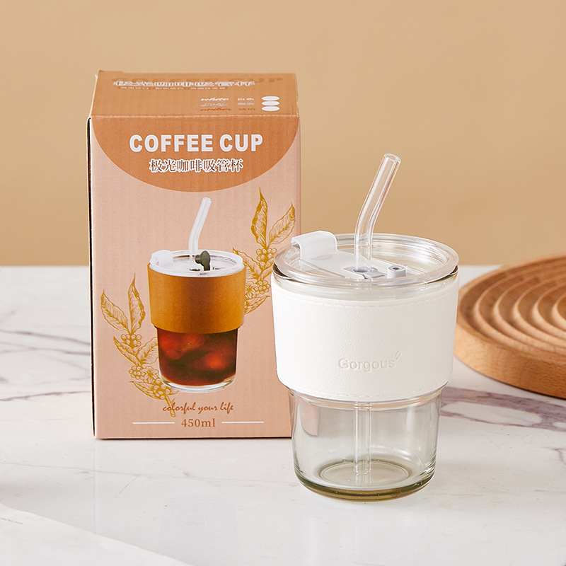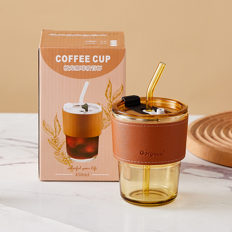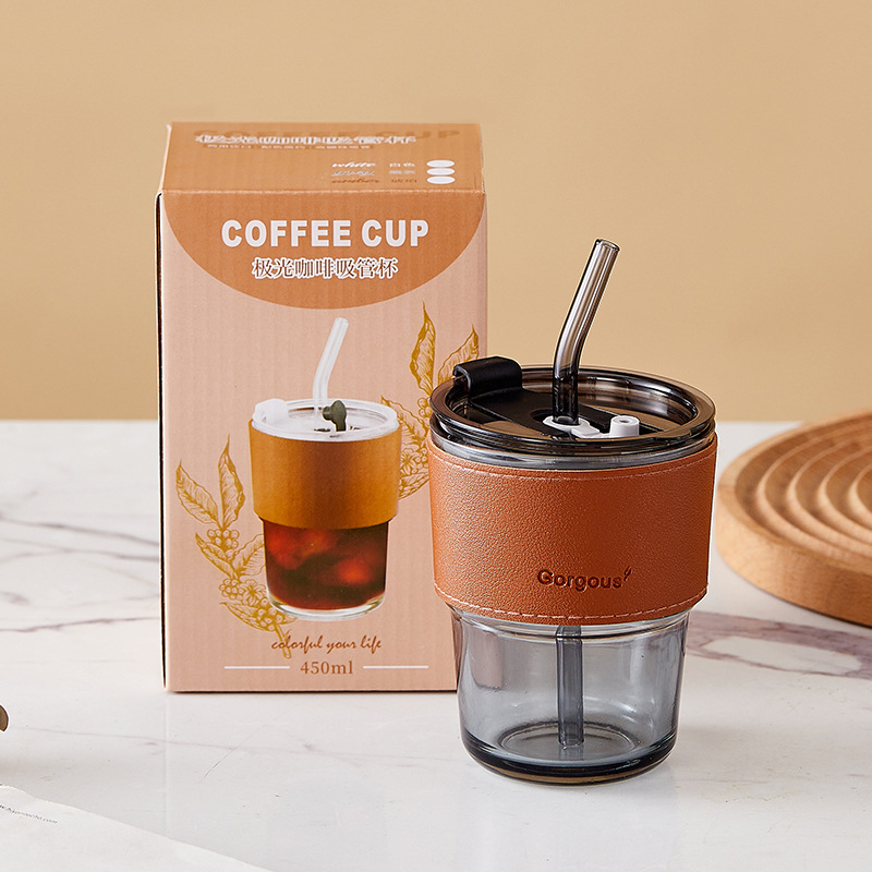 그물 빨강 대나무 컵 유리 빨대 하이 컬러 값 오피스 컵 커피 컵 실용적인 선물 상자 작은 선물 도매스토어 가기