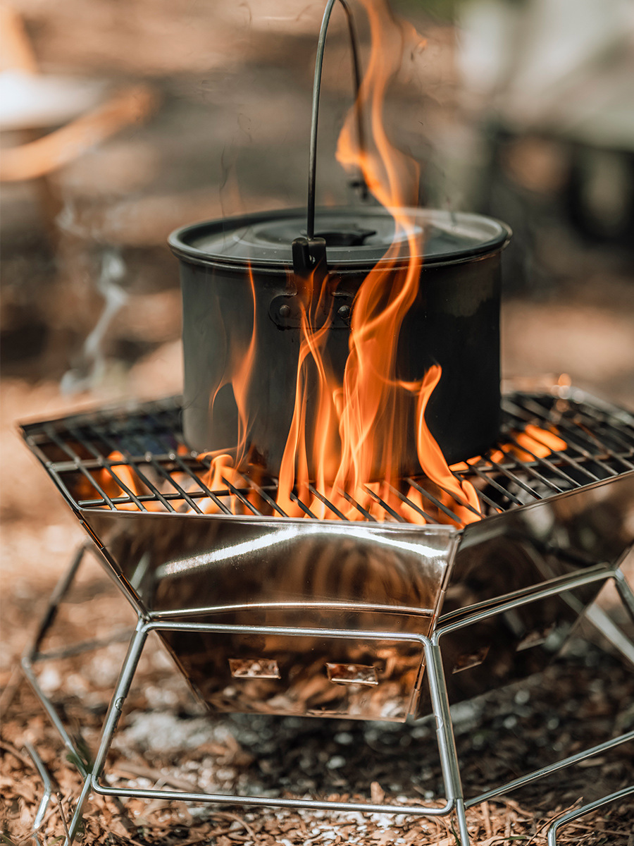 푹신한 야외 접는 불타는 스토브 캠핑 온난화 나무 모닥불 냄비 테이블 휴대용 스테인레스 스틸 두꺼운 바베큐