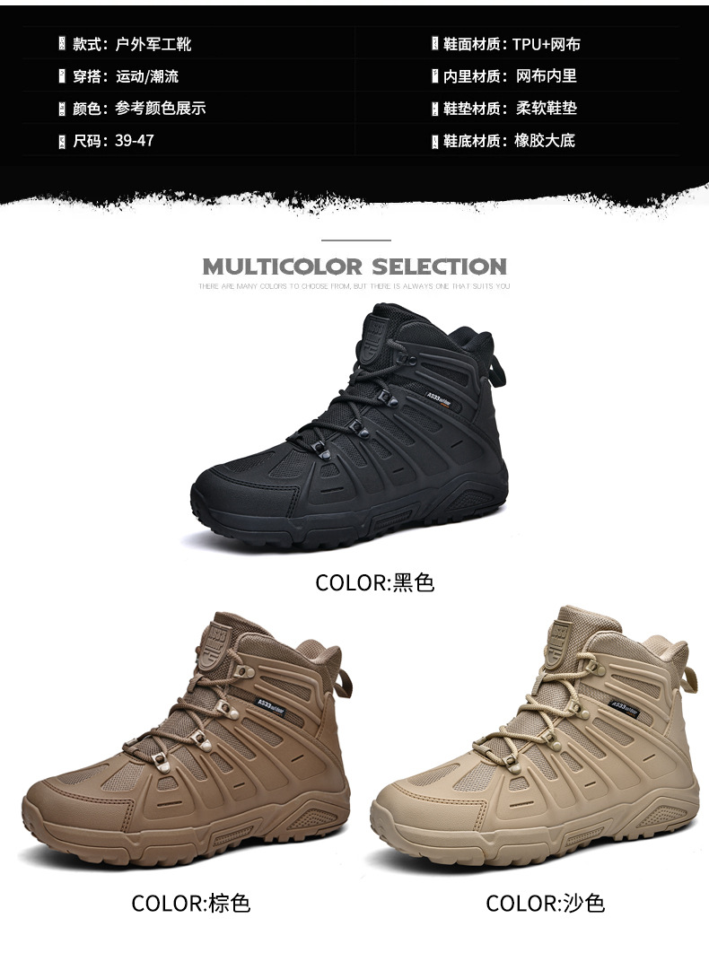 2025 새로운 야외 전술 부츠 하이 탑 전투 부츠 미끄럼 방지 충격 흡수 랜드 부츠 야외 캠핑 등산 신발