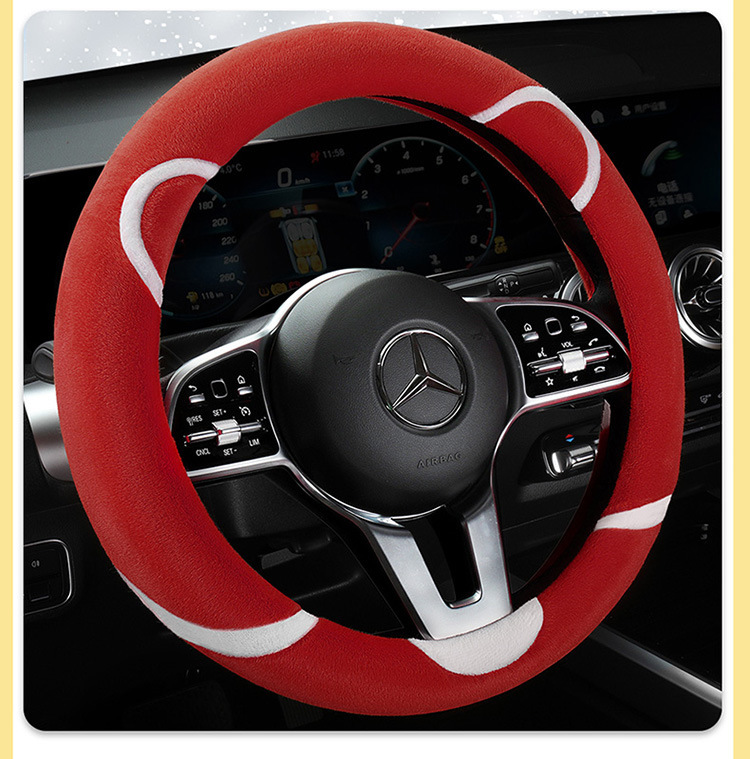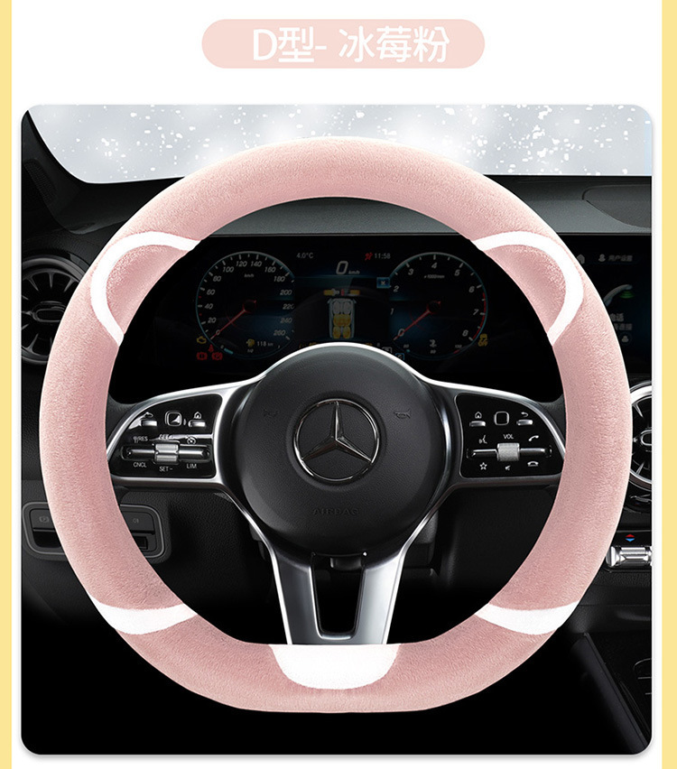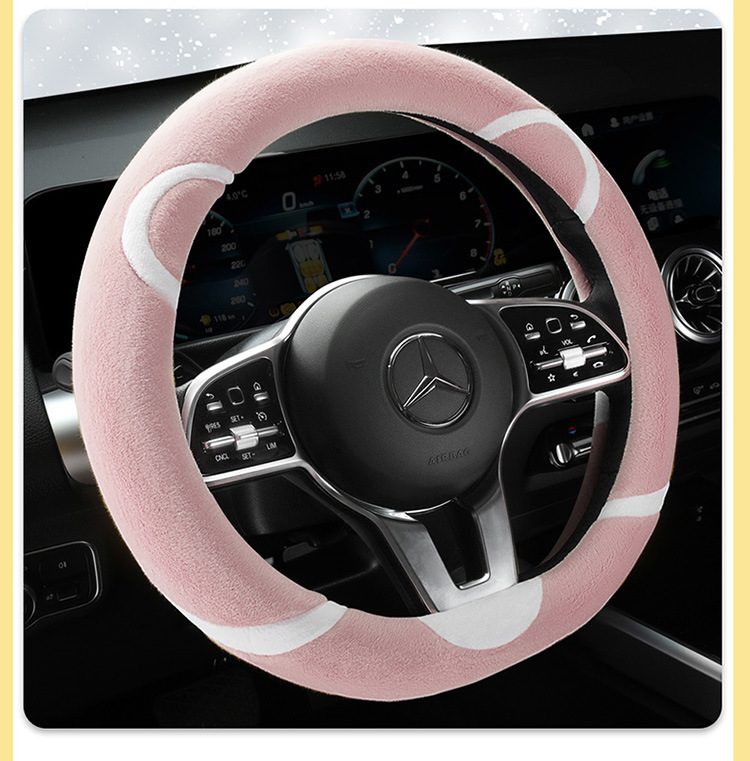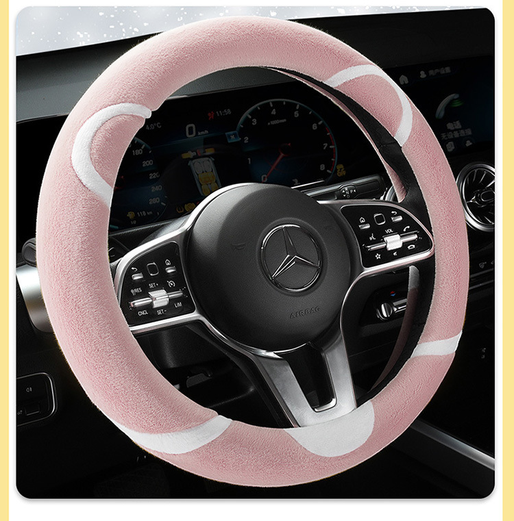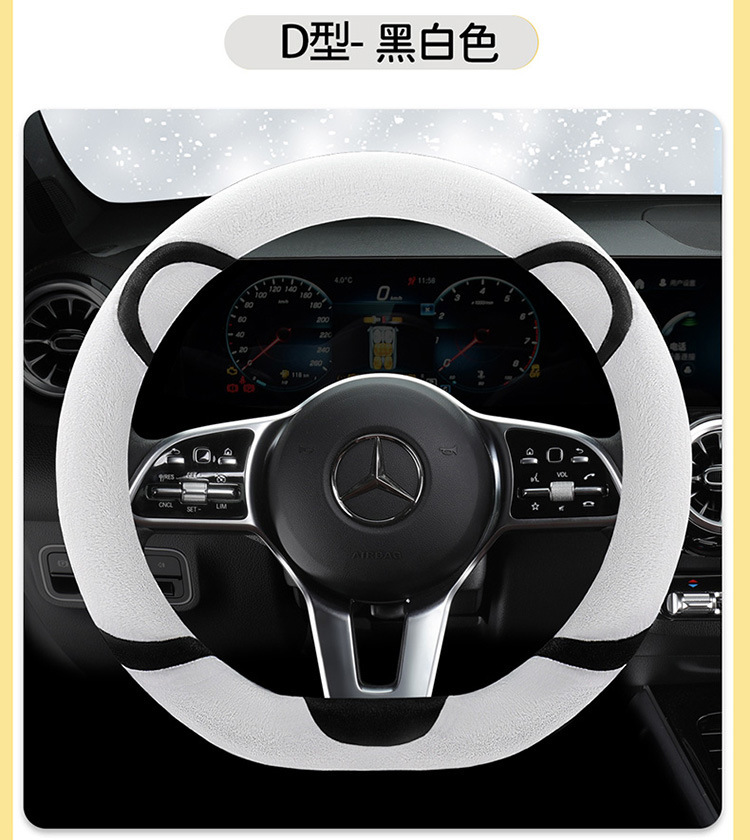 겨울 짧은 플러시 자동차 핸들 커버 d 형 여신 귀여운 따뜻한 미끄럼 방지 짧은 벨벳 겨울 자동차 핸들 커버 도매