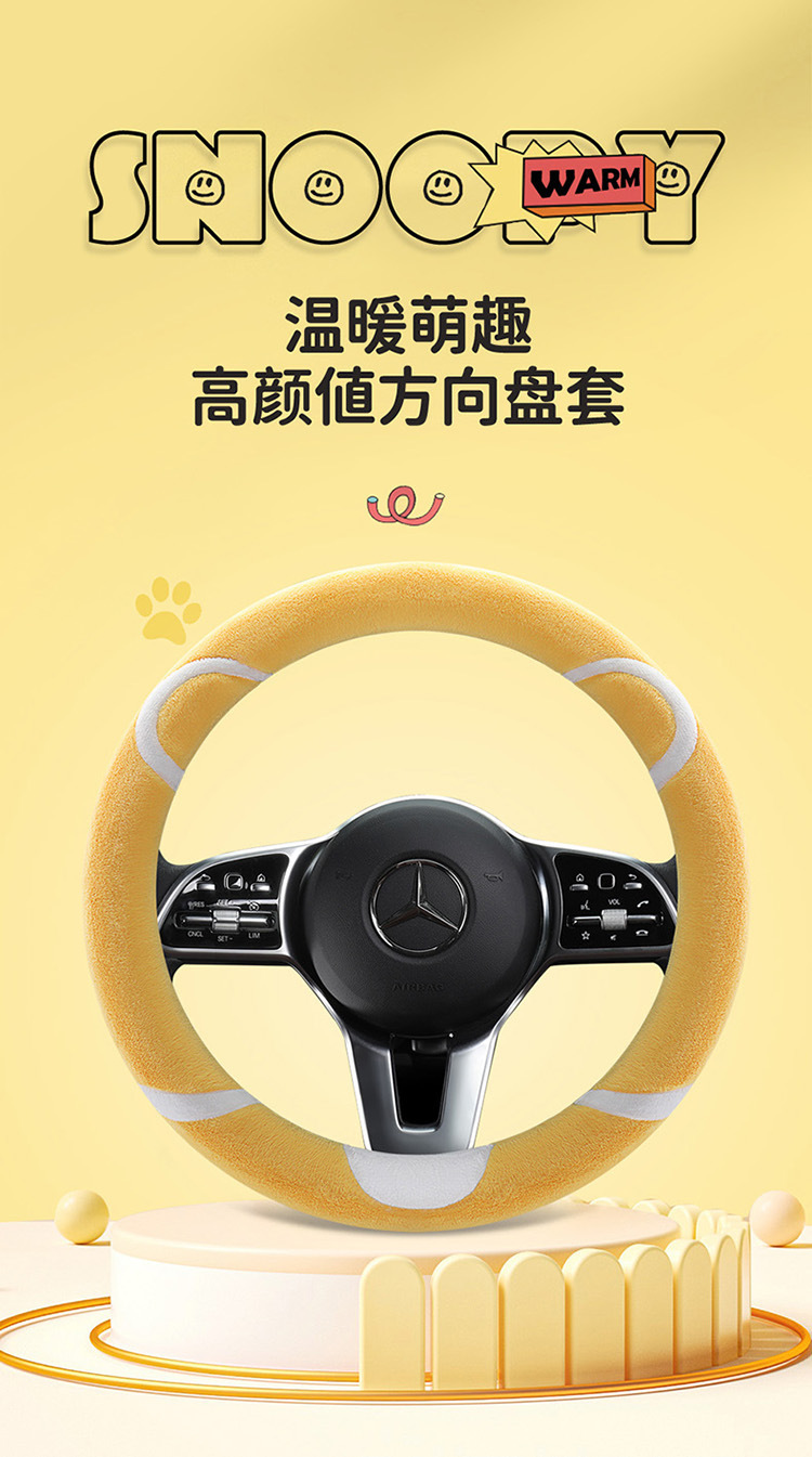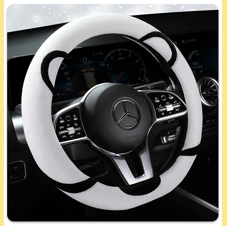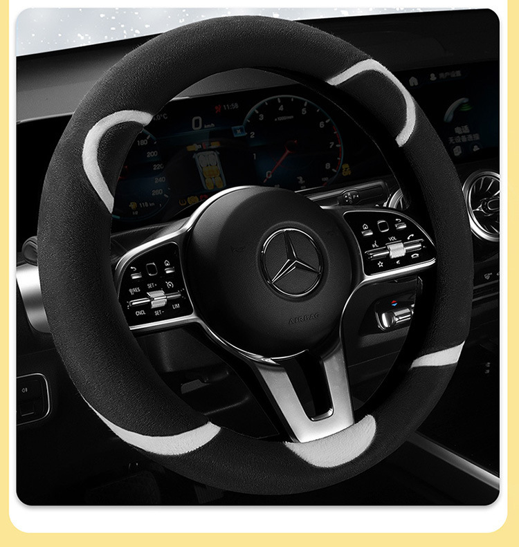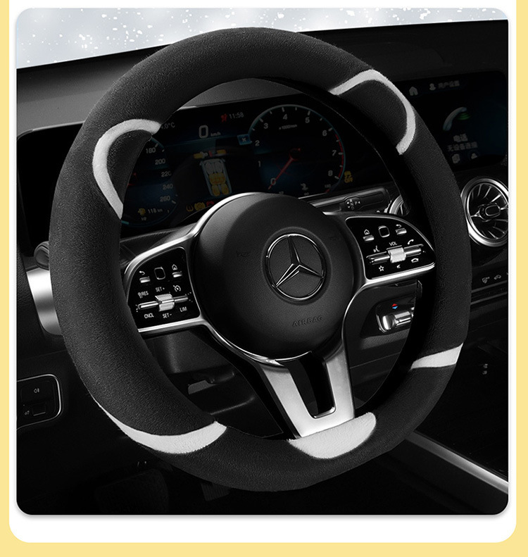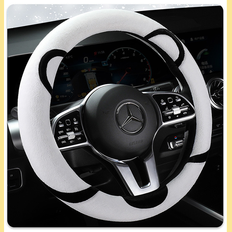 겨울 짧은 플러시 자동차 핸들 커버 d 형 여신 귀여운 따뜻한 미끄럼 방지 짧은 벨벳 겨울 자동차 핸들 커버 도매