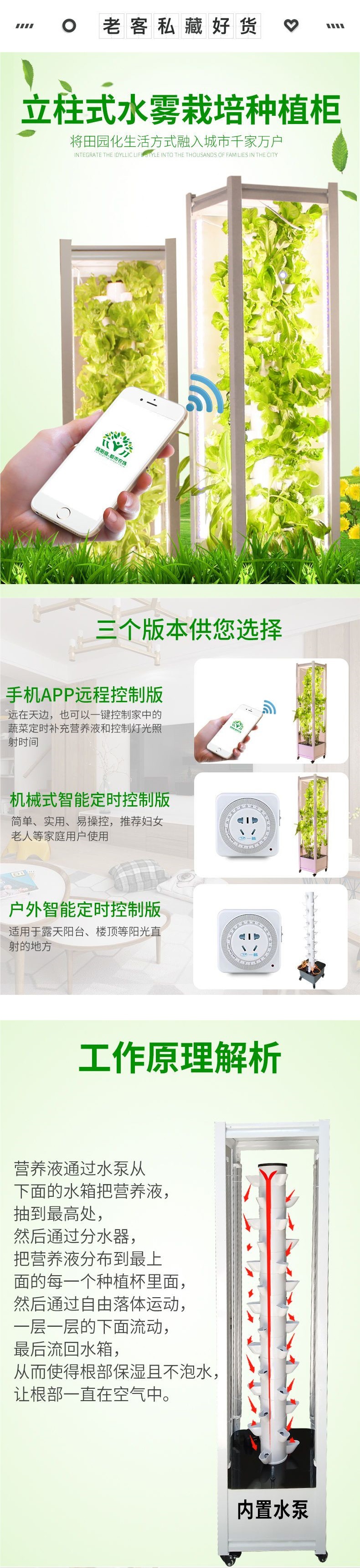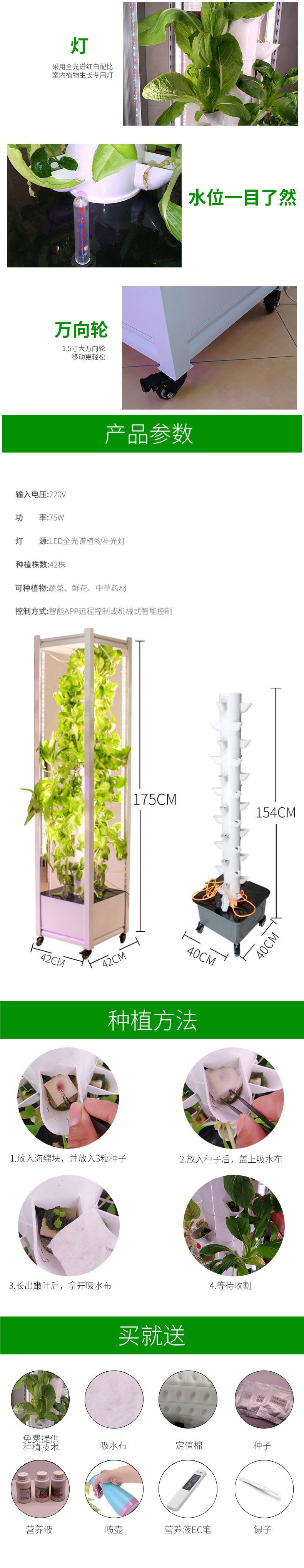 3 차원 기둥 냄비 수직 수경 가정용 물 안개 재배 브래킷 심기 캐비닛 야채 심기 기계 장비스토어 가기