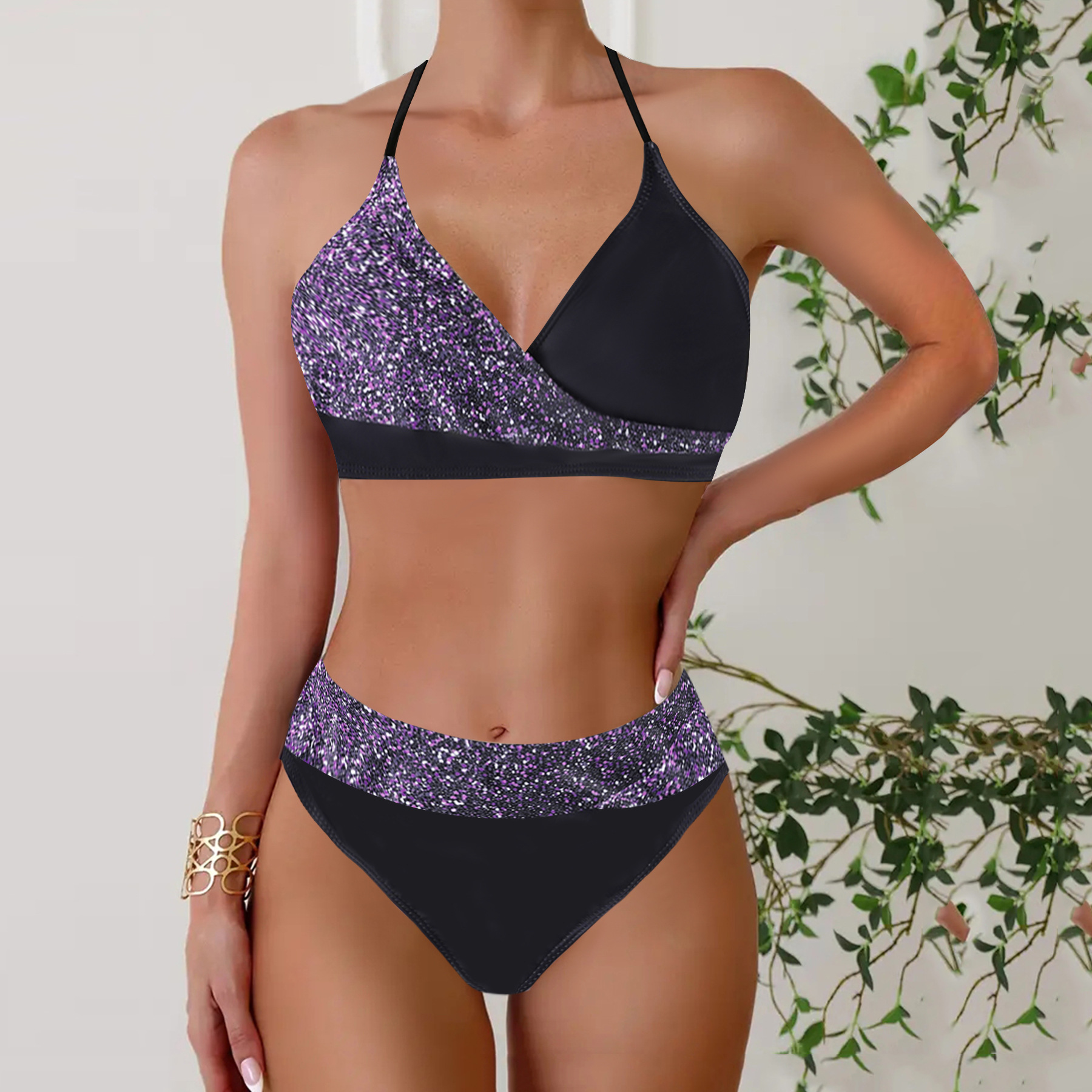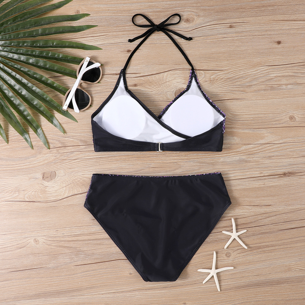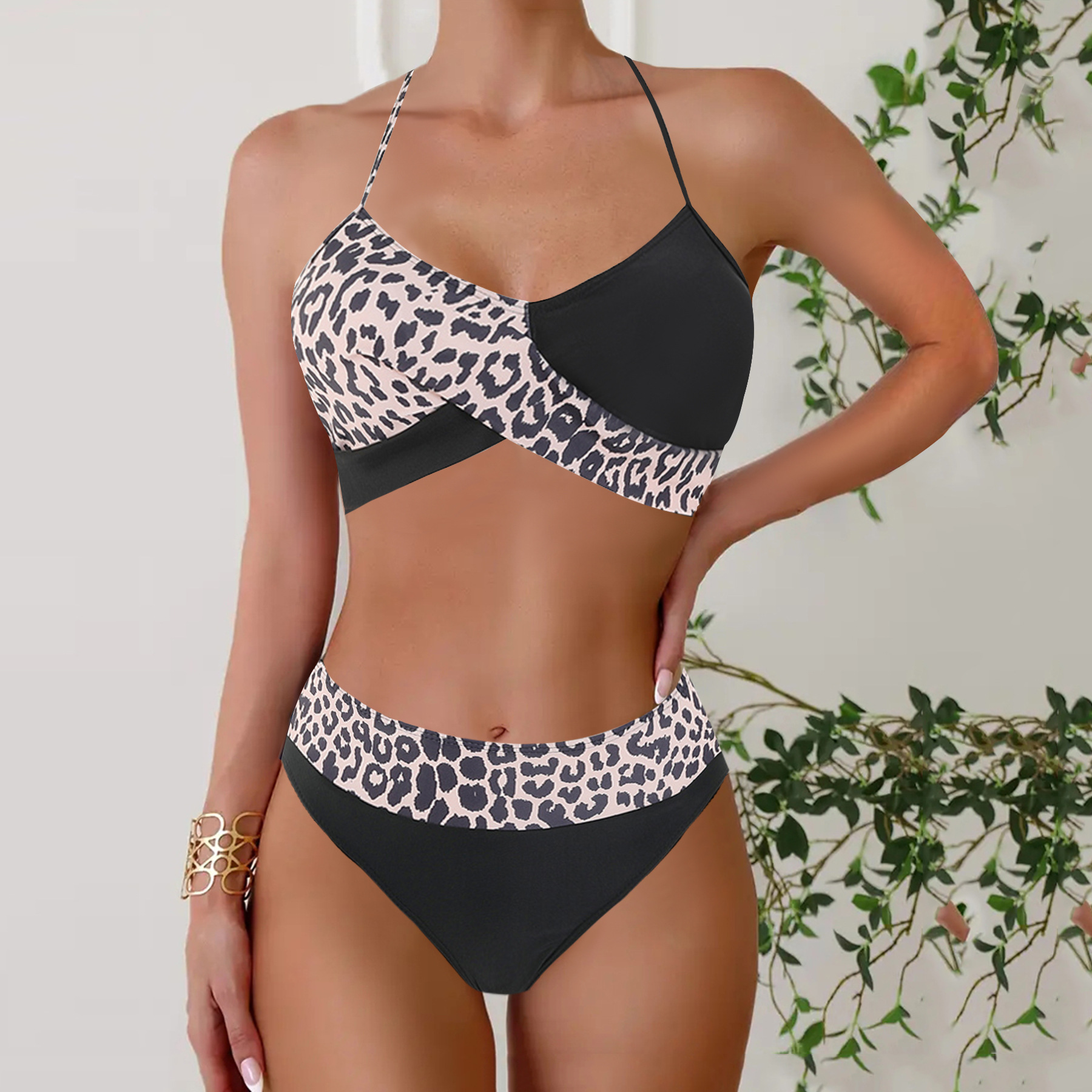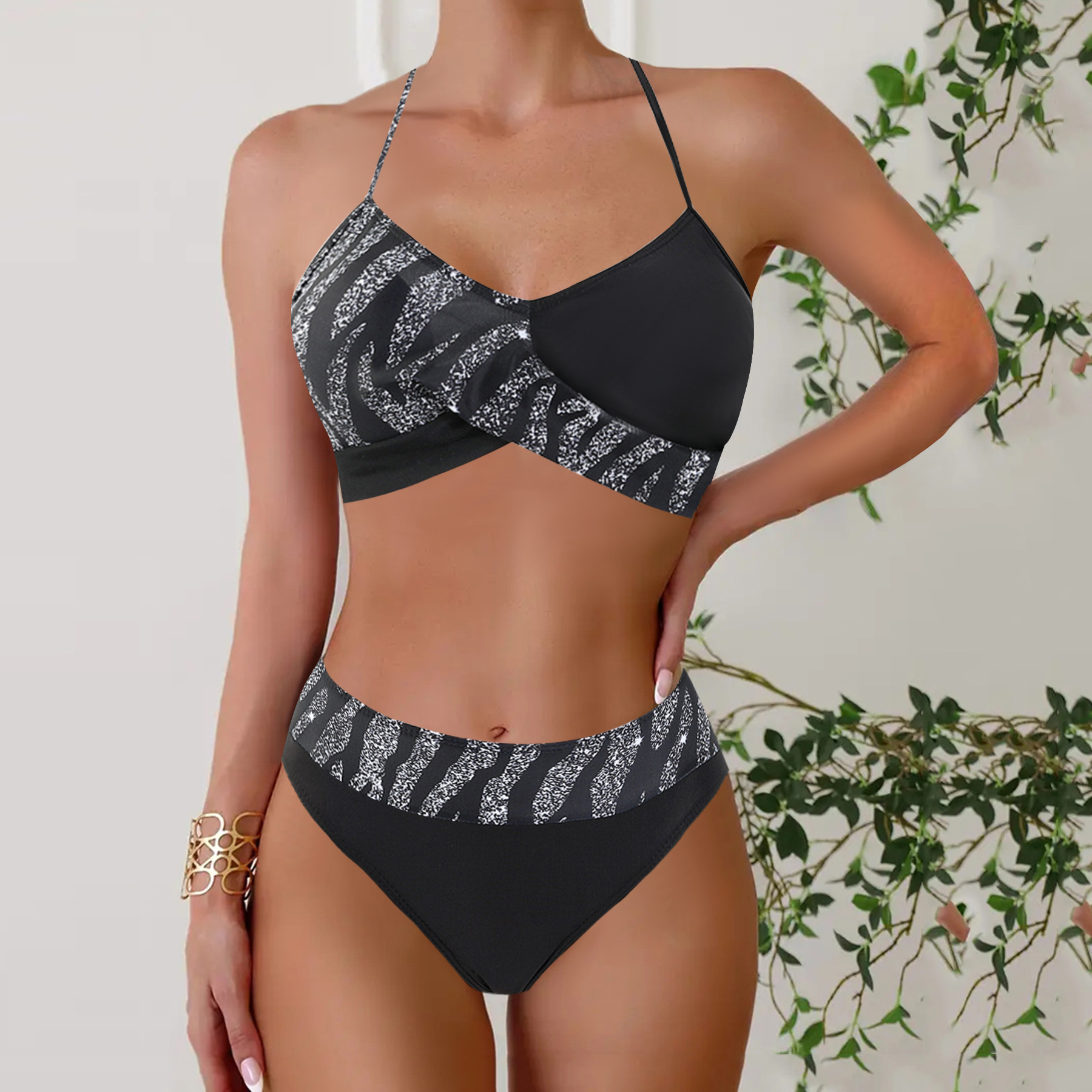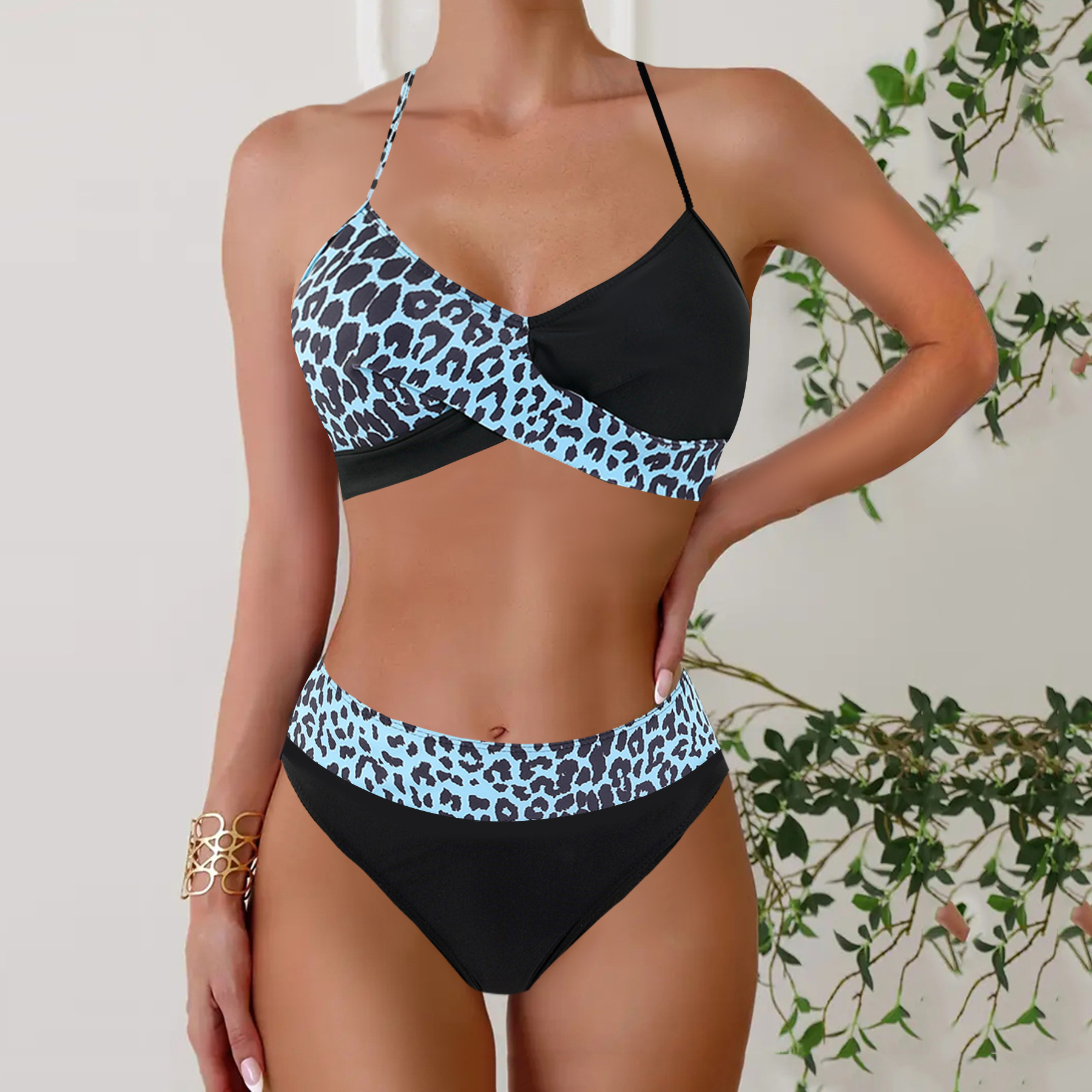 2025 신상 유럽 및 미국 스타일 대형 사이즈 크로스오버 삼각 프린트 하이웨이스트 스플릿 비키니 여성용 수영복 BIJINI스토어 가기