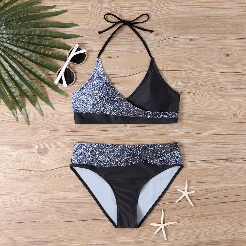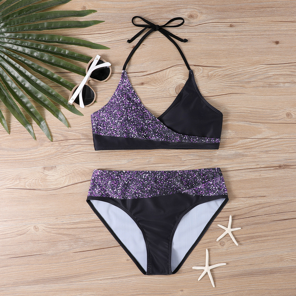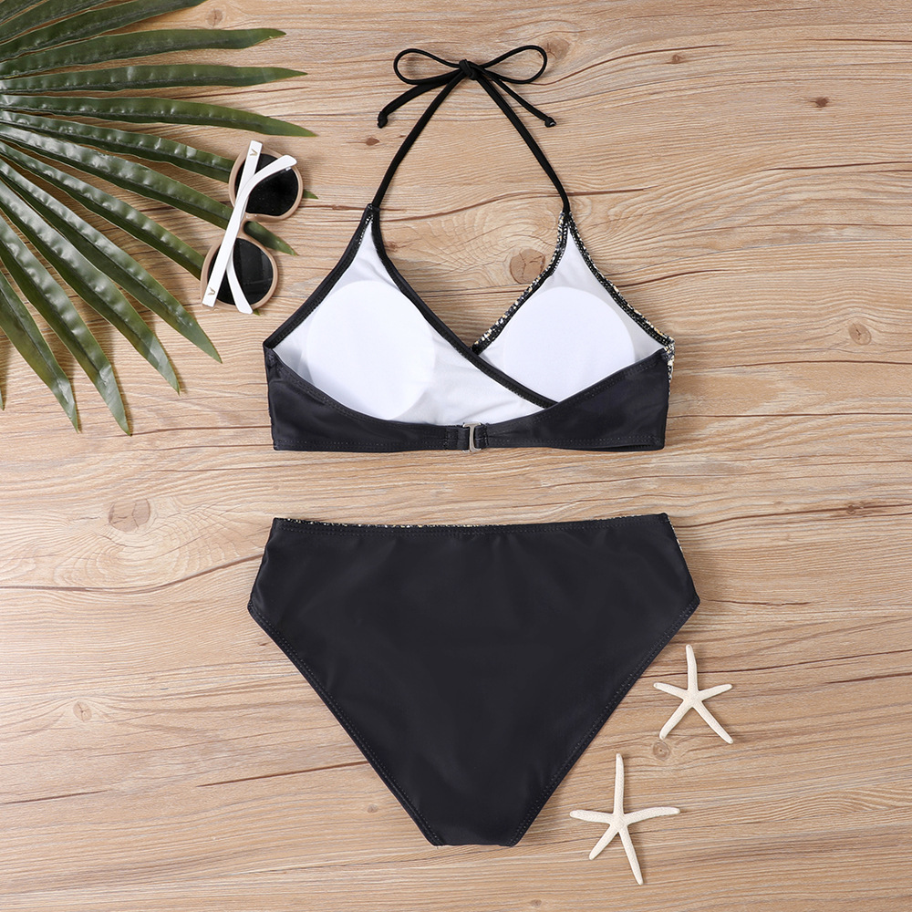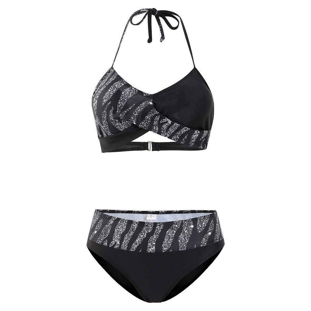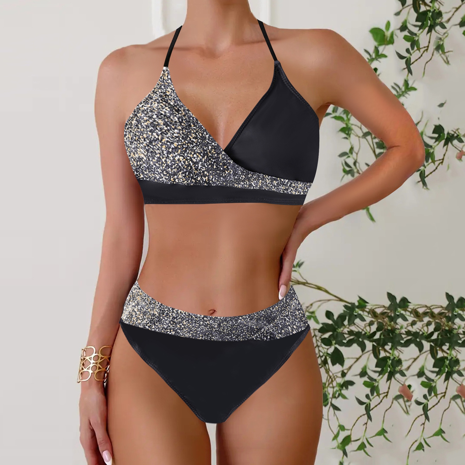 2025 신상 유럽 및 미국 스타일 대형 사이즈 크로스오버 삼각 프린트 하이웨이스트 스플릿 비키니 여성용 수영복 BIJINI스토어 가기