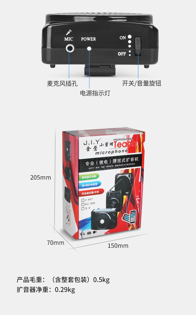 꿀벌 확성기 여행 가이드 교육 허리 교수형 확성기 음성 촉진 휴대용 마이크 앰프