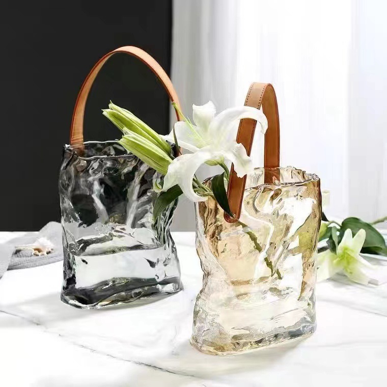 북유럽 인 핸드백 오리지널 컬러 유리 꽃병 수생 꽃 어항 꽃 배열 거실 식탁 장식품