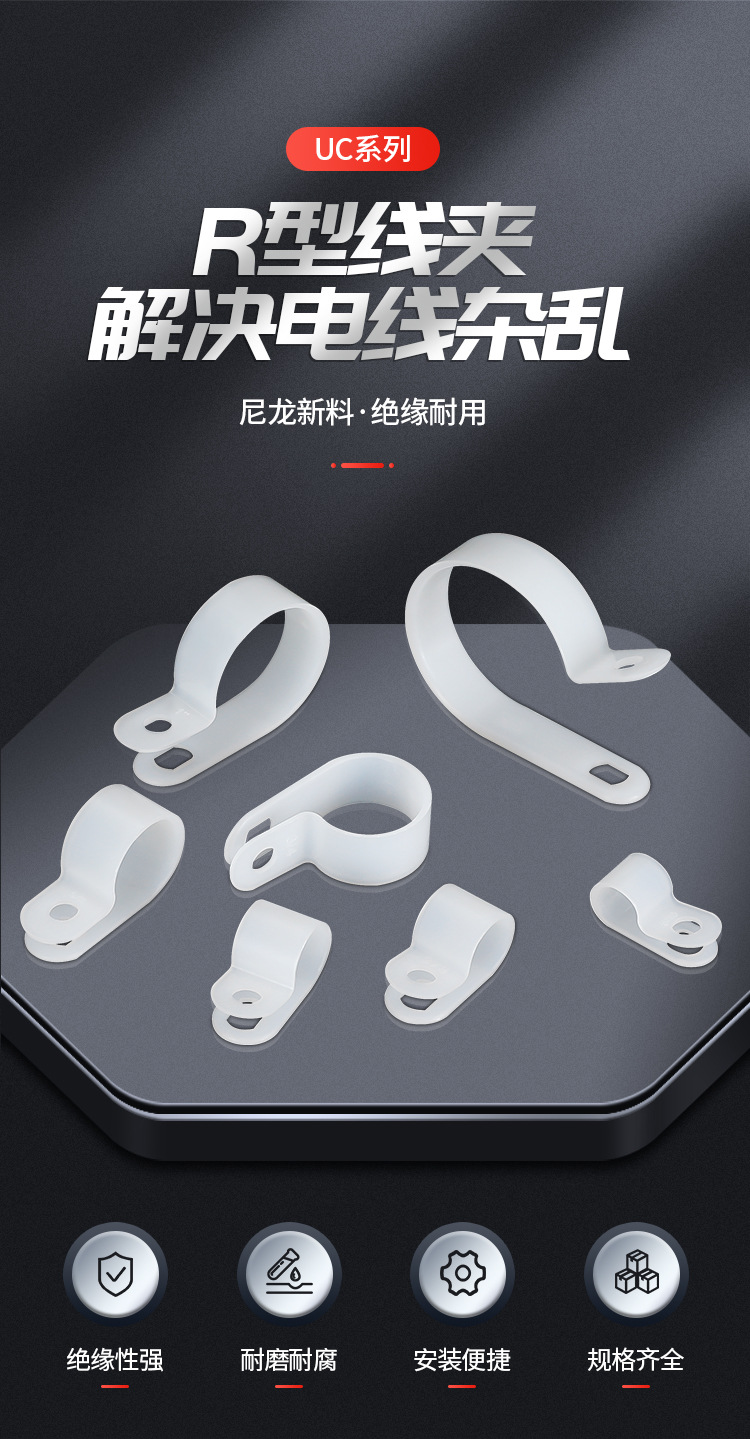 두꺼운 UCR 타입 클램프 절연 플라스틱 파이프 클램프 압착 버클 와이어 및 케이블 고정 공장 직접 판매 사양 완료스토어 가기