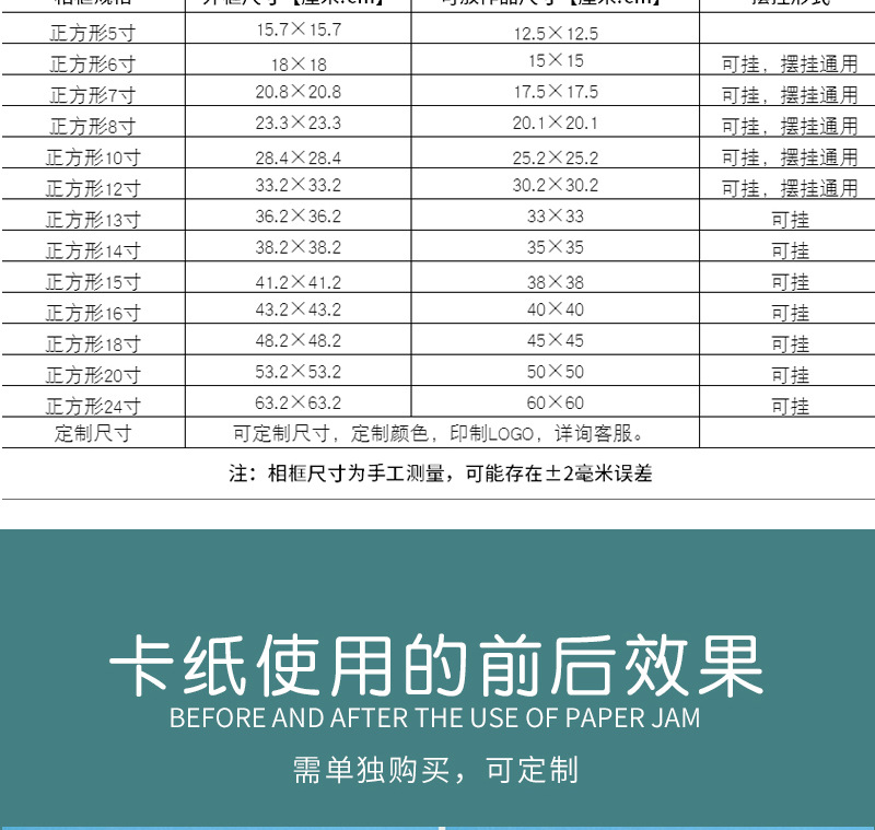 정사각형 크리에이티브 포토 프레임 퍼즐 종이 컷 액자 세트 테이블 벽걸이 간단한 단단한 나무 프레임 아트 페인팅 전시회스토어 가기