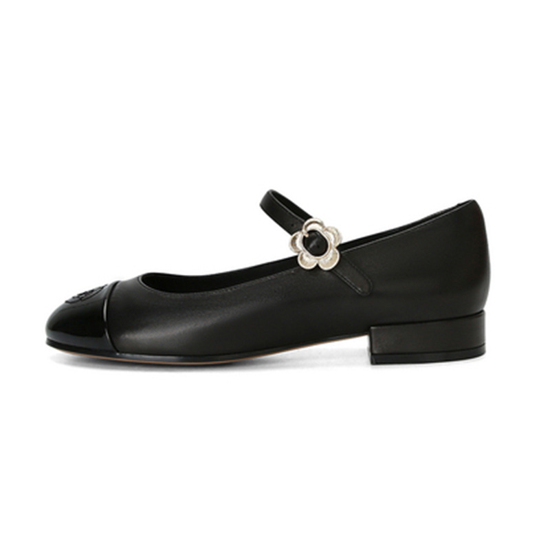재고 있음 ~ Xiaoxiangfeng 동백 버클 스트랩 두꺼운 뒤꿈치 메리 제인 신발 여성 봄 프랑스 색상 차단 작은 가죽 신발스토어 가기
