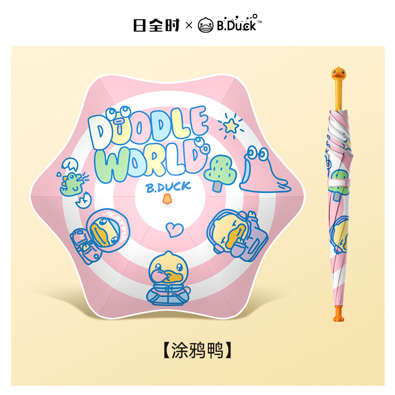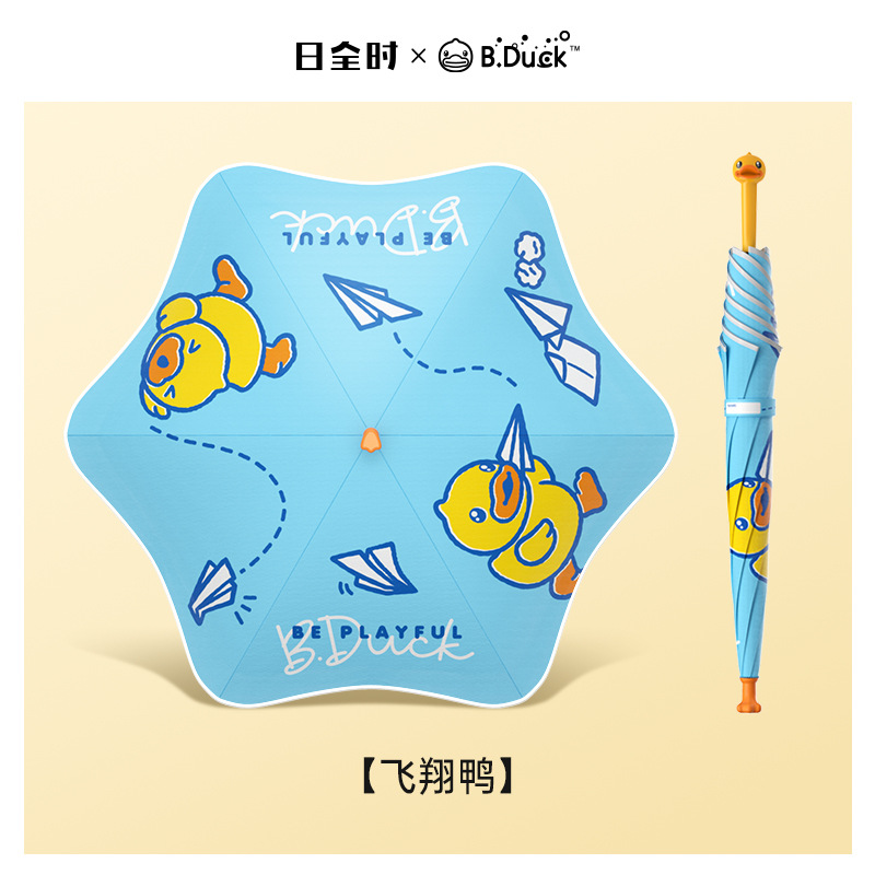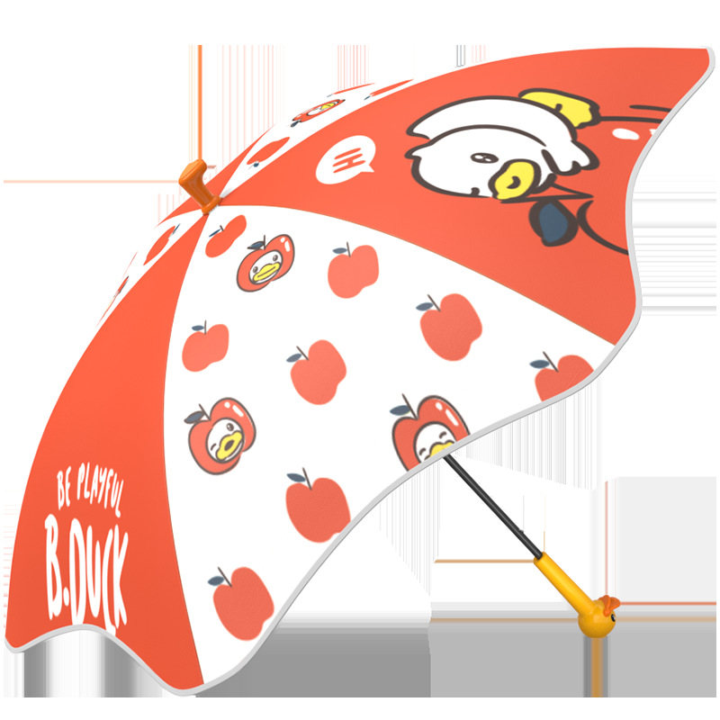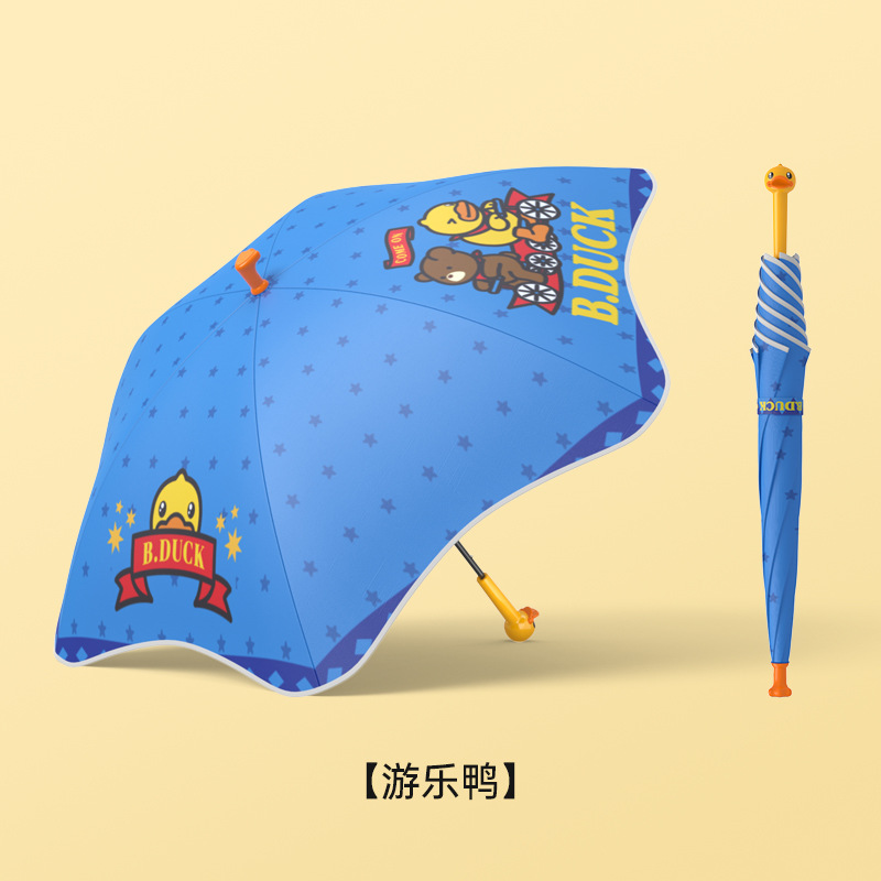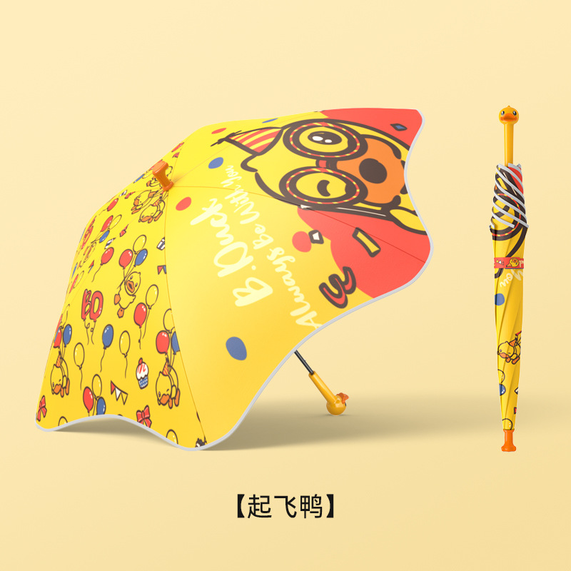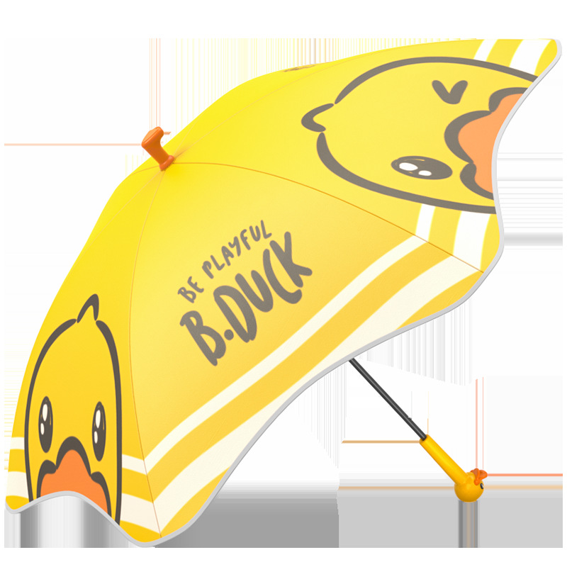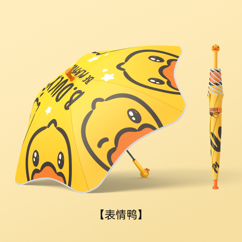 B. 오리 꼬마 노랑 오리 안전 둥근 어린이 우산 소년 소녀 초등학생 유치원 비와 비 이중 목적 긴 손잡이 우산