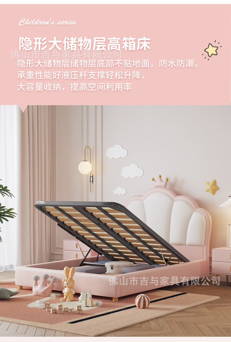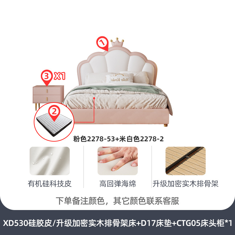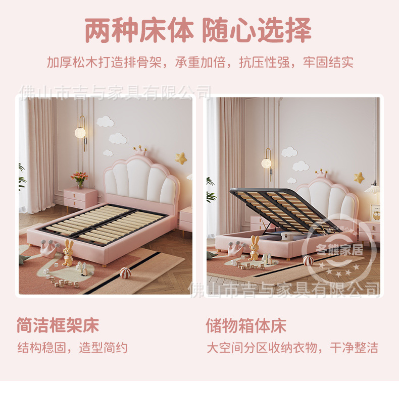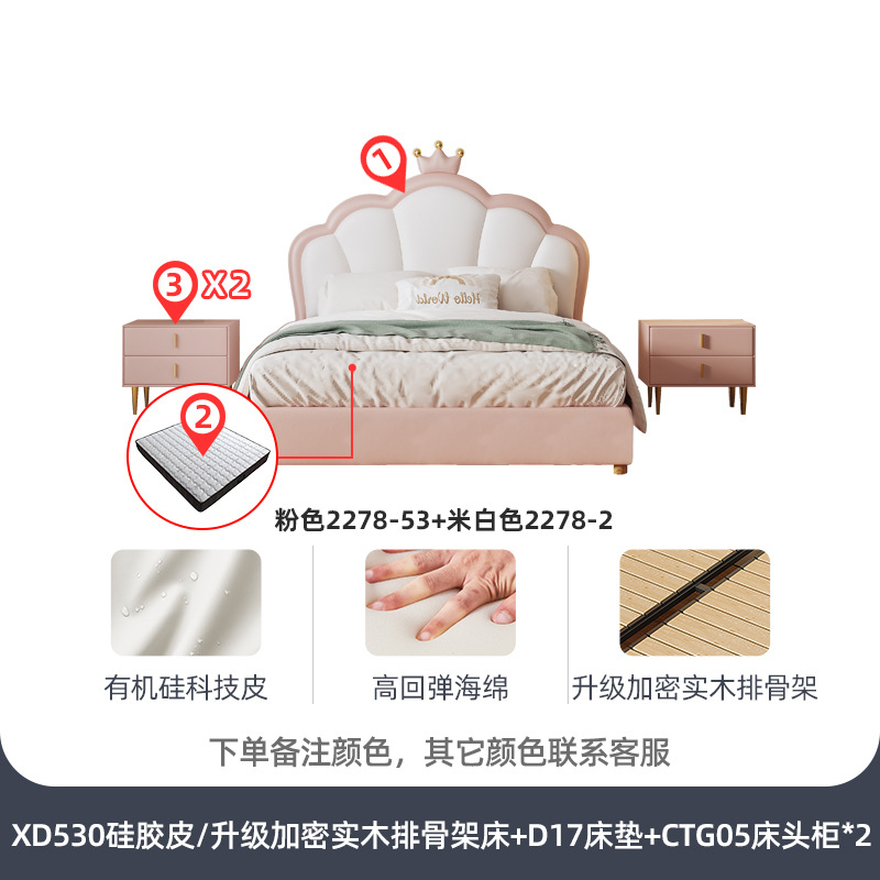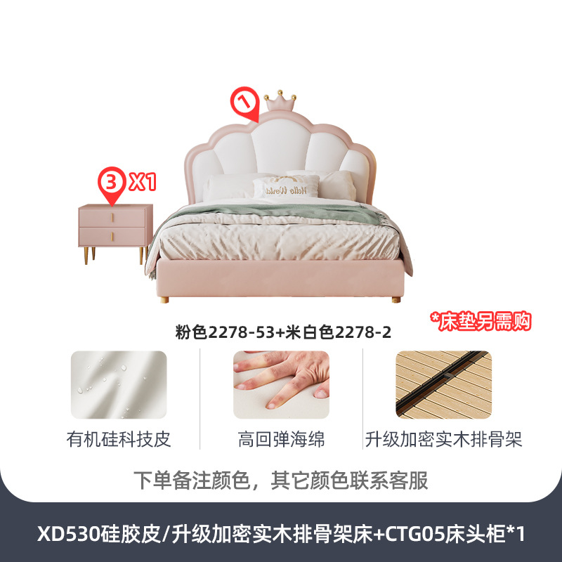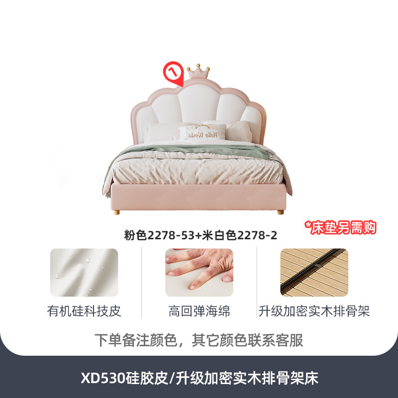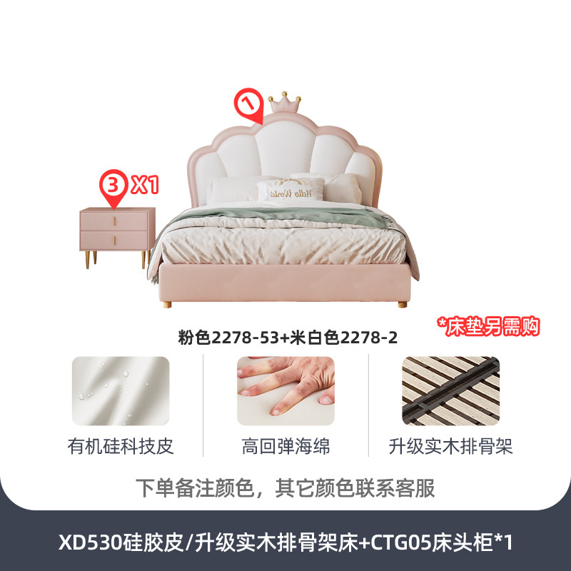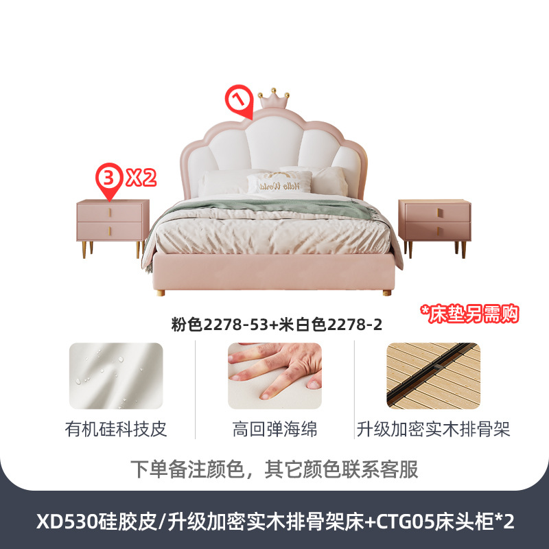 지 및 어린이 공주 침대 크라운 소녀의 침대 핑크 소녀의 방 꿈 소녀의 침대 빛 고급 인터넷 연예인 가죽 부드러운 침대