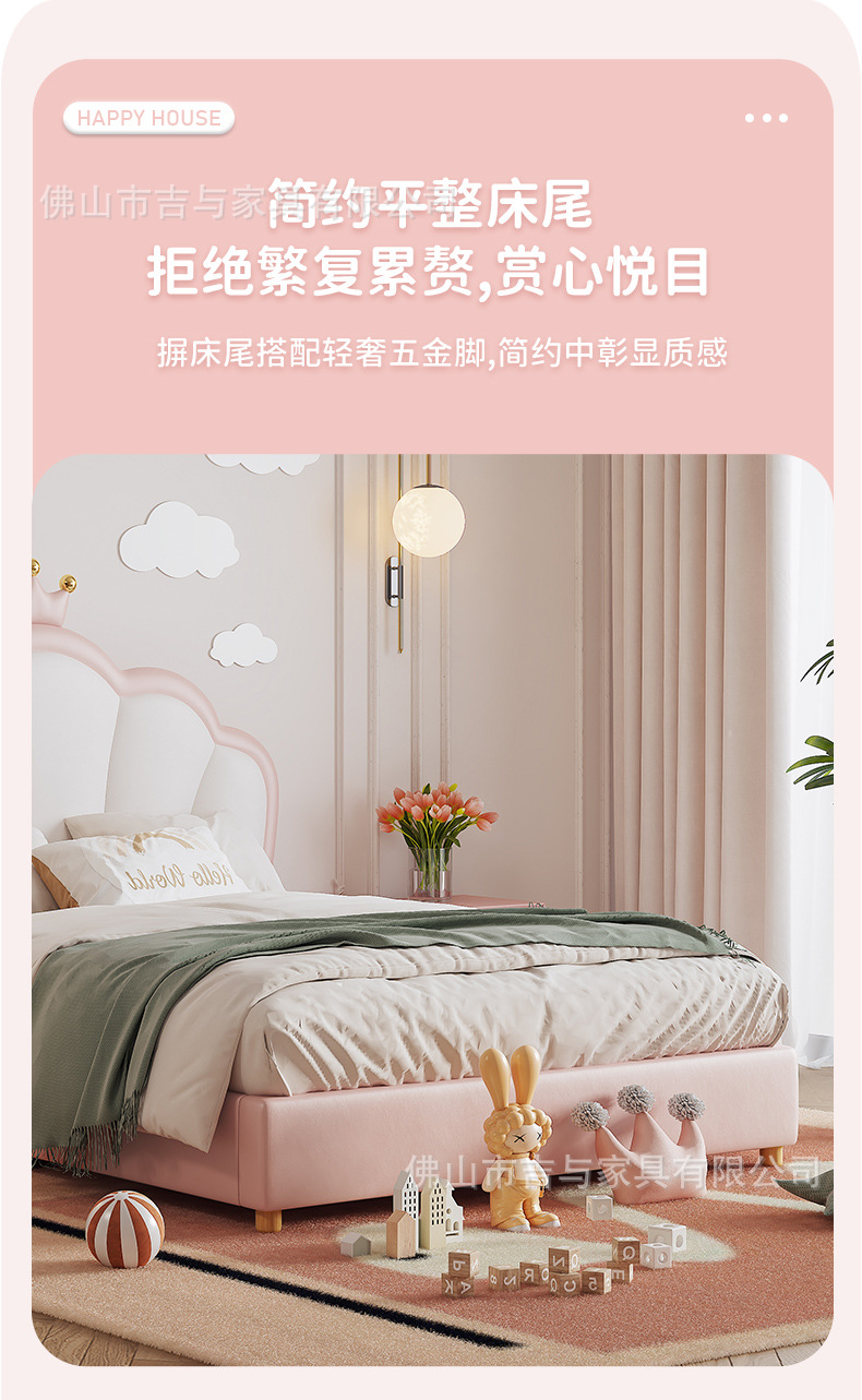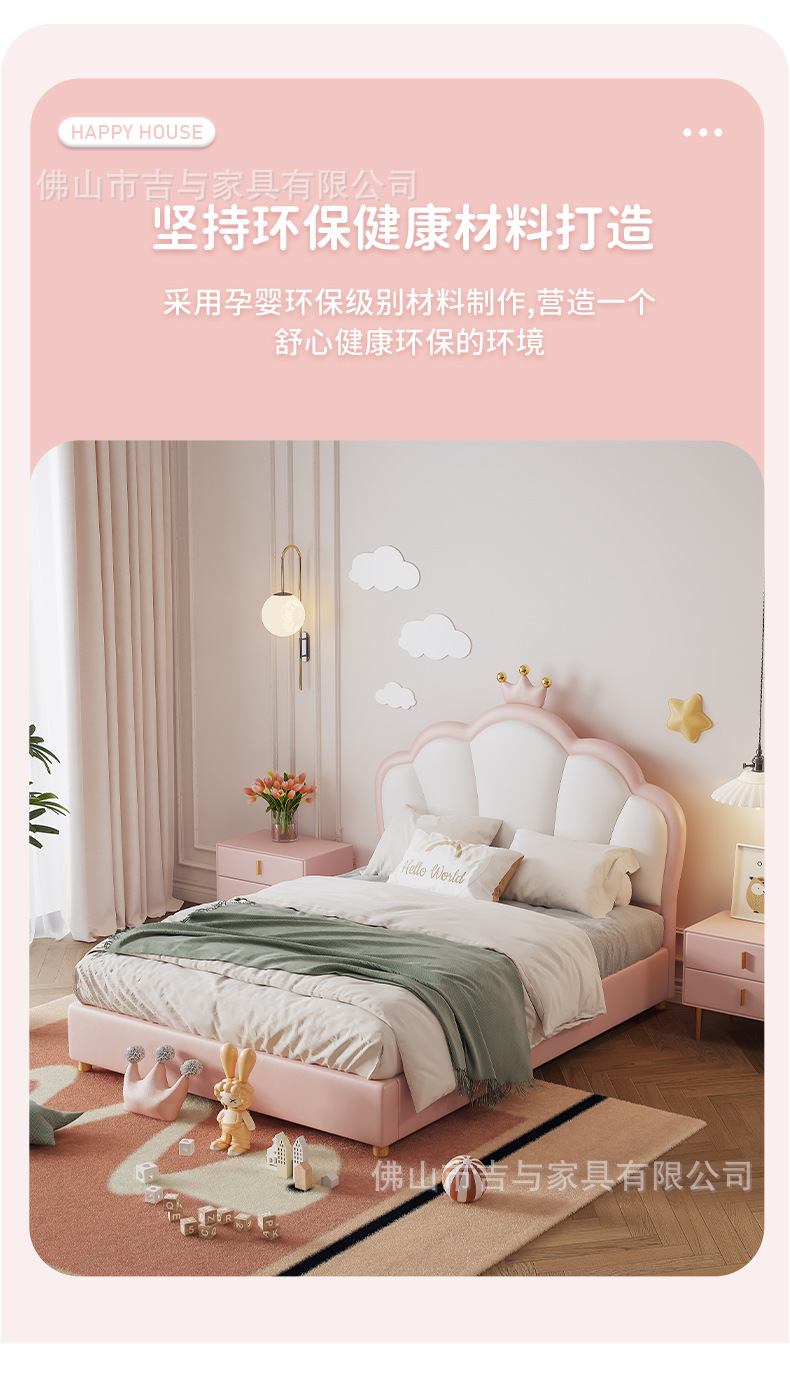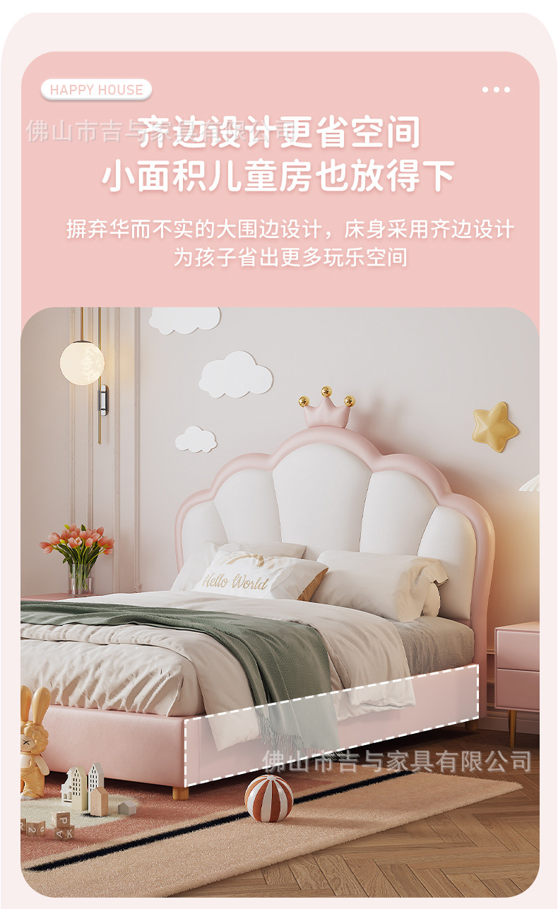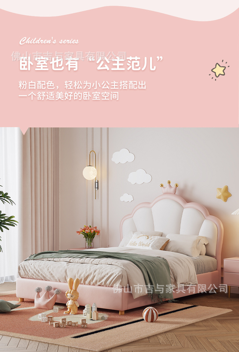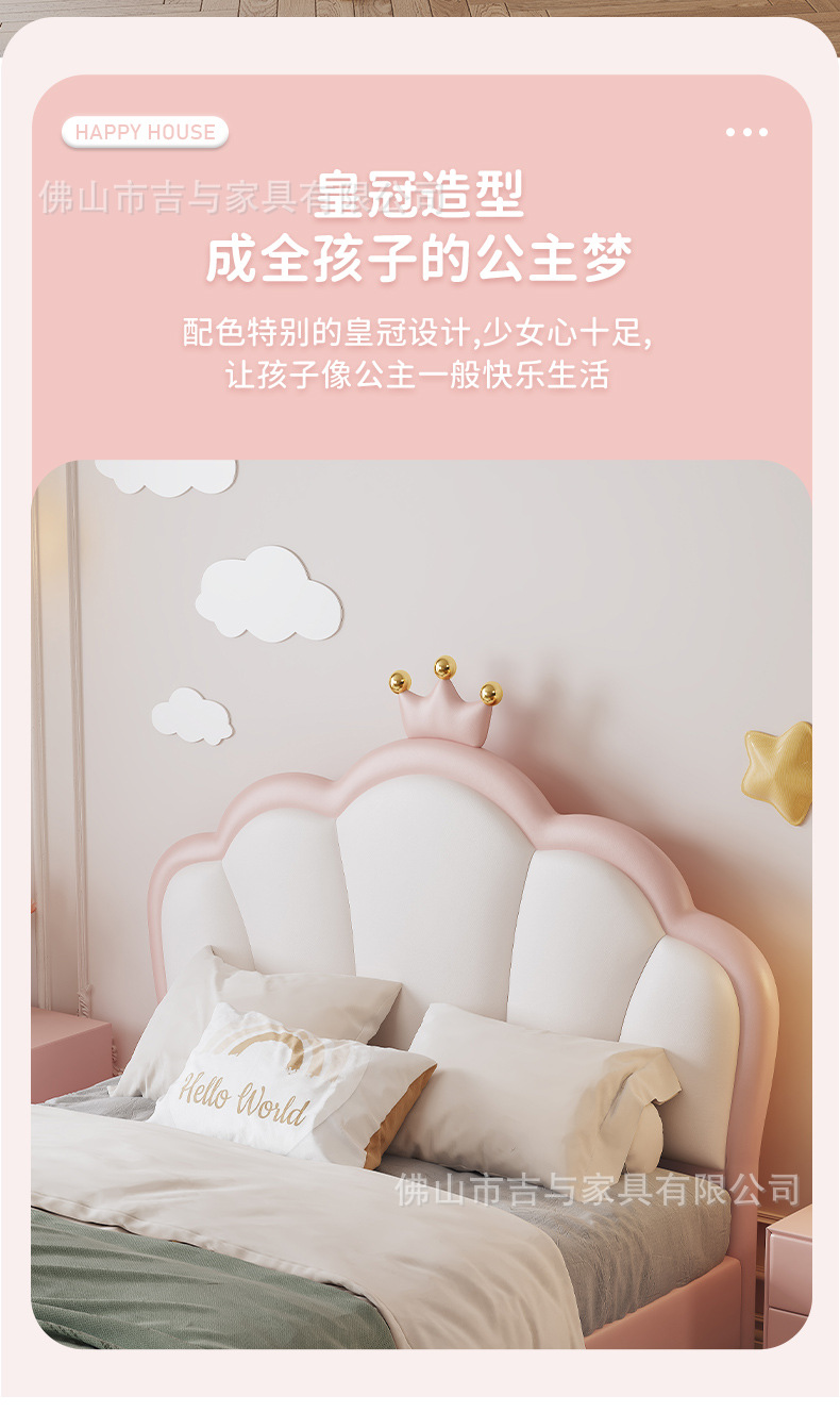 지 및 어린이 공주 침대 크라운 소녀의 침대 핑크 소녀의 방 꿈 소녀의 침대 빛 고급 인터넷 연예인 가죽 부드러운 침대