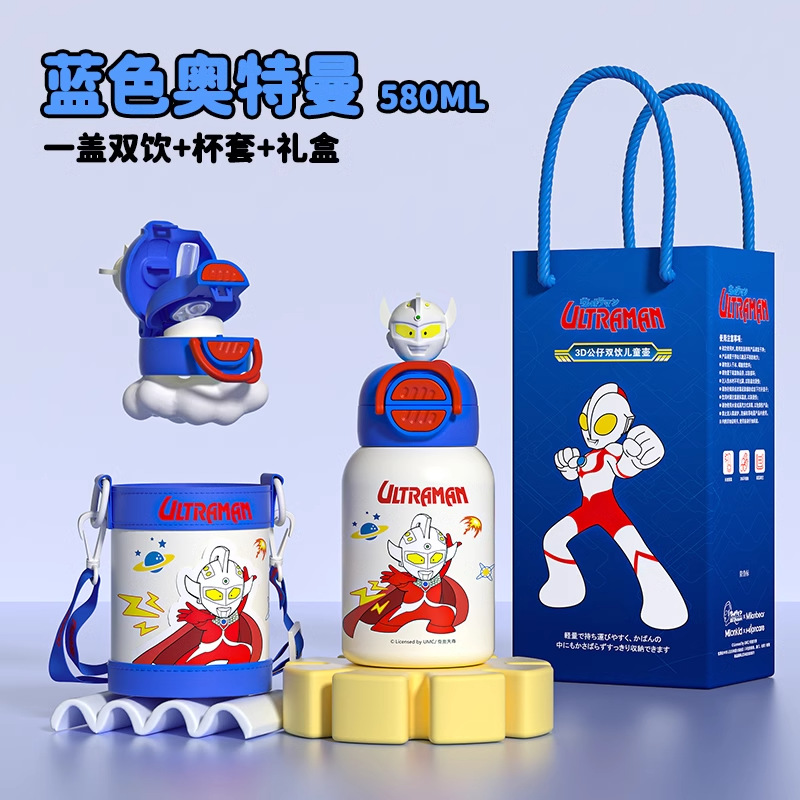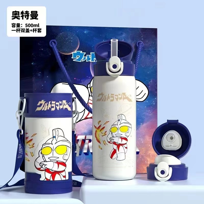 • 500ML/울트라맨 블루 앤 화이트 [이중뚜껑+컵커버+선물박스] M59
