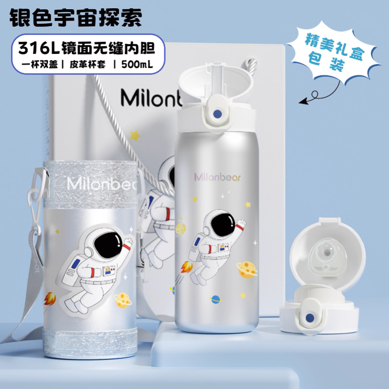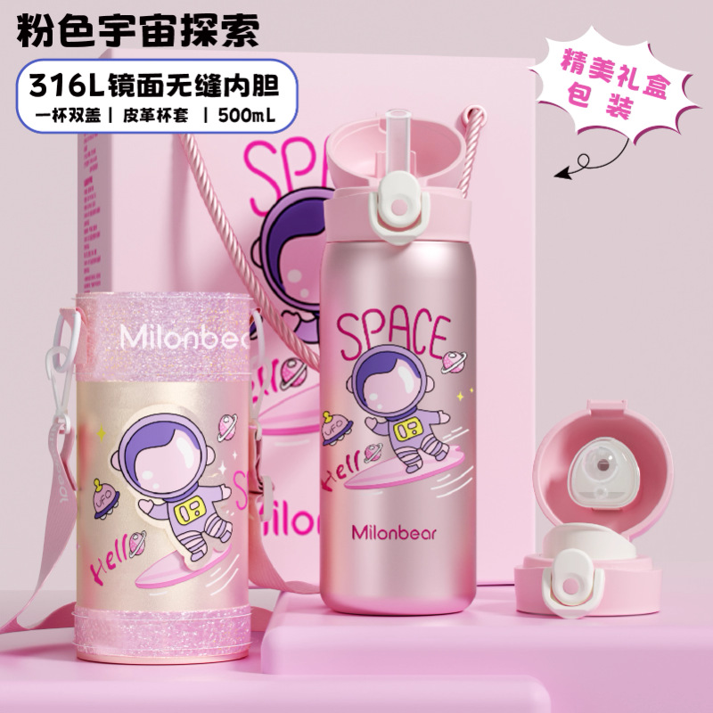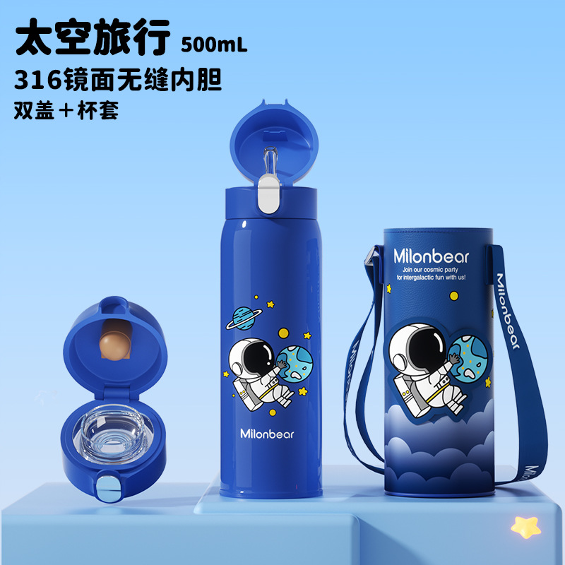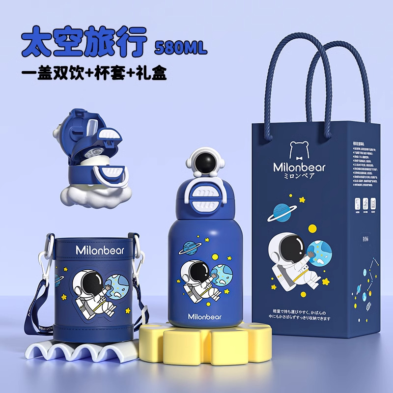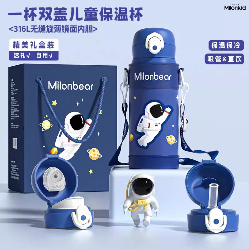 밀룬 곰 어린이 이중 뚜껑 보온병 컵 빨대 휴대용 대용량 남녀 학생 학교 음료 컵