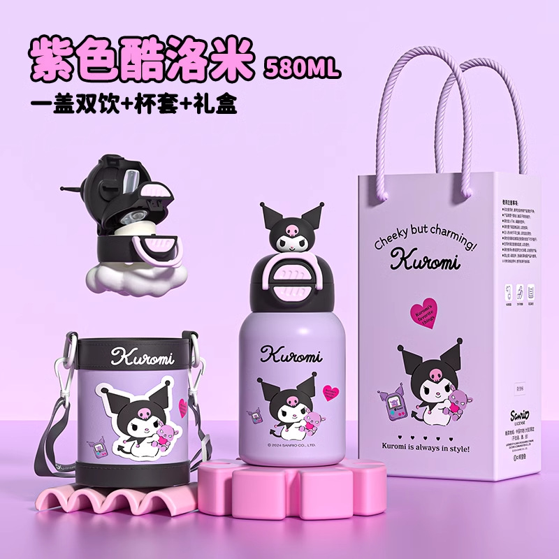 • 580ML/퍼플 쿠로미 [3D 더블드링크뚜껑+컵커버] M58