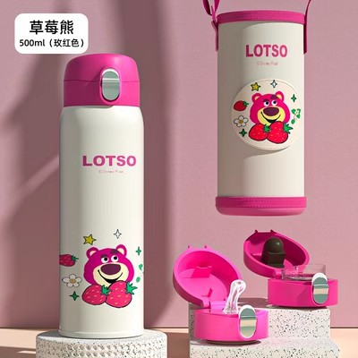 • 500ml/핑크 딸기 베어 [더블 커버 + 컵 세트]