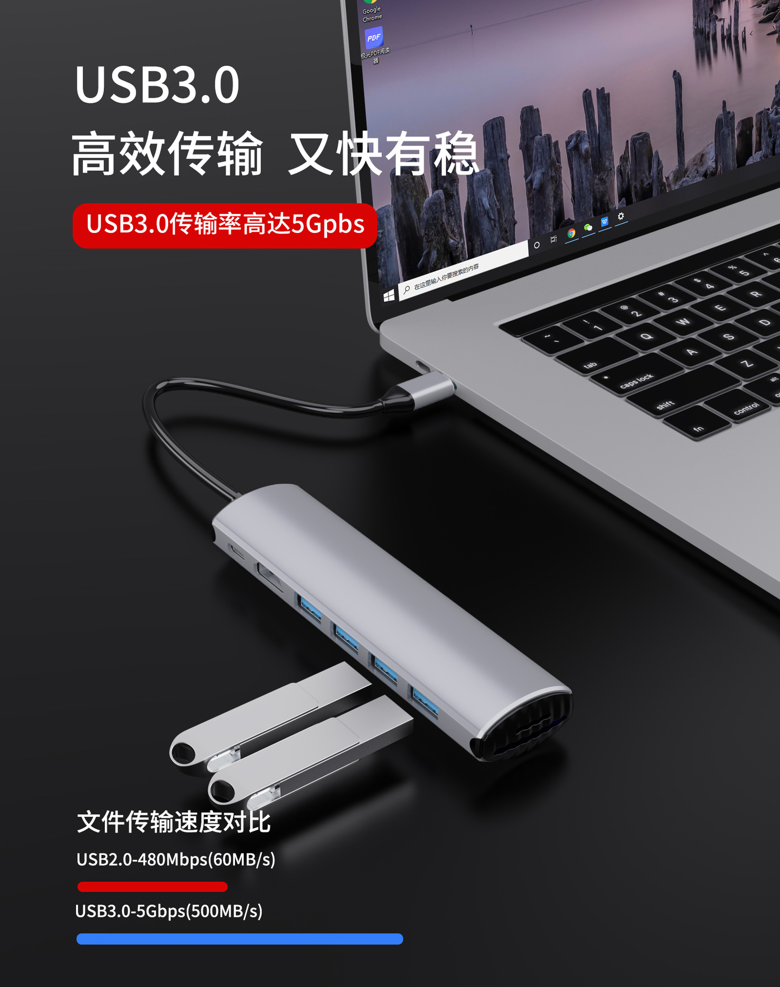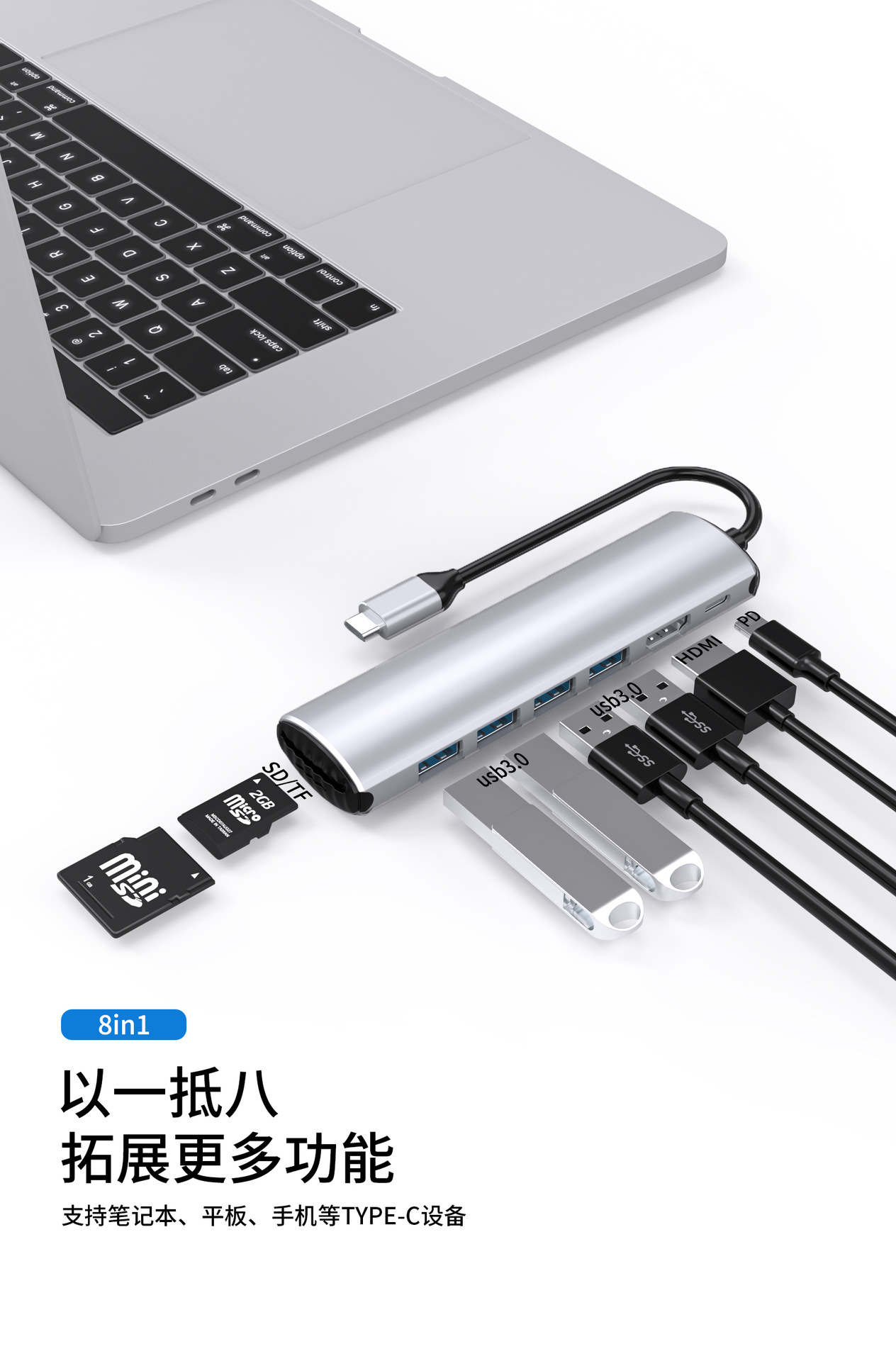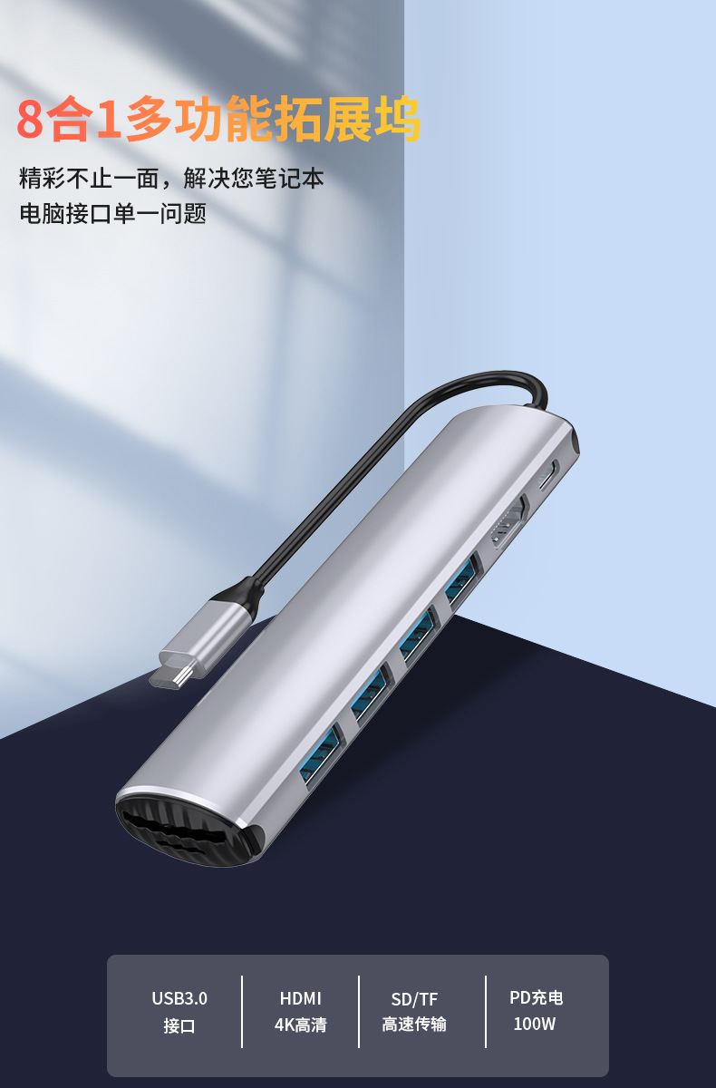 공장 재고 8 in 1type-c 도킹 스테이션 usb 허브 다기능 허브 SD/TFUSB3.0 확장 도크스토어 가기