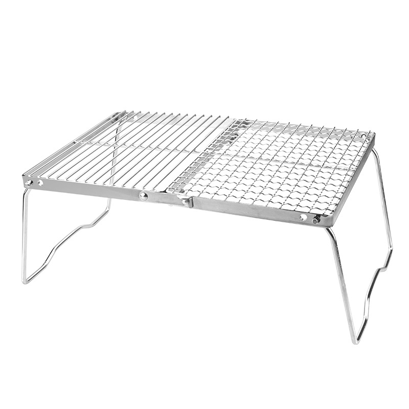 야외 접이식 바베큐 그릴 캠핑 휴대용 두꺼운 스테인레스 스틸 두 배 작은 주방 선반