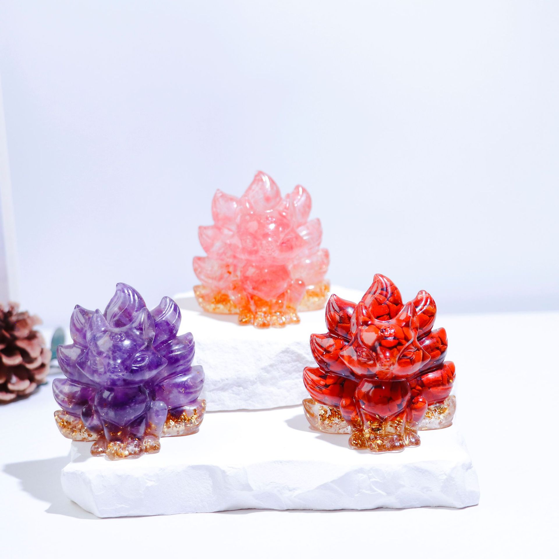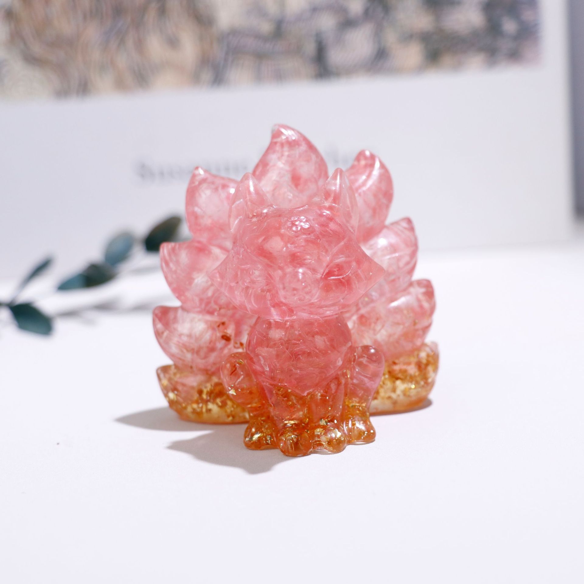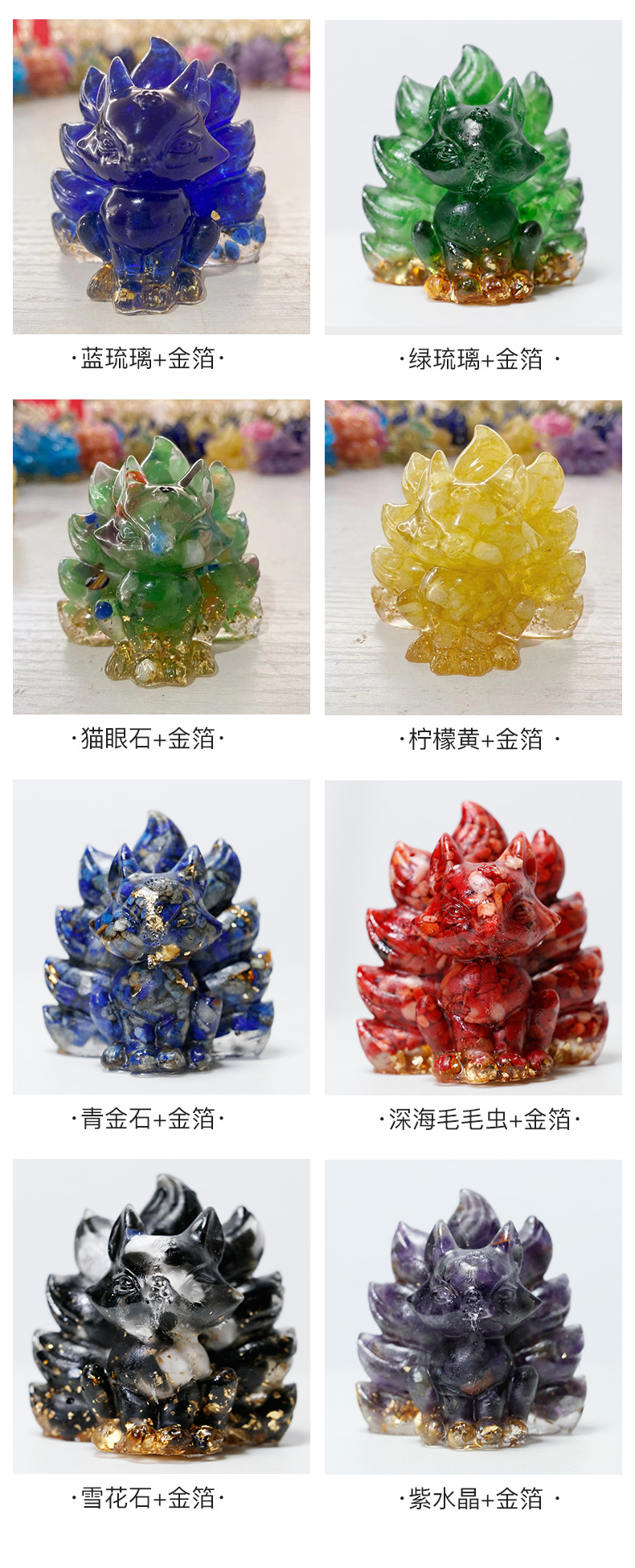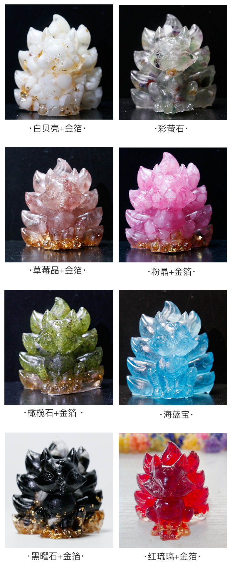 피닉스 나인 테일 폭스 장식품 유색 유리 크리스탈 자갈 접착제 떨어지는 공예품 복숭아 꽃 번영하는 결혼 커플 기념 선물스토어 가기