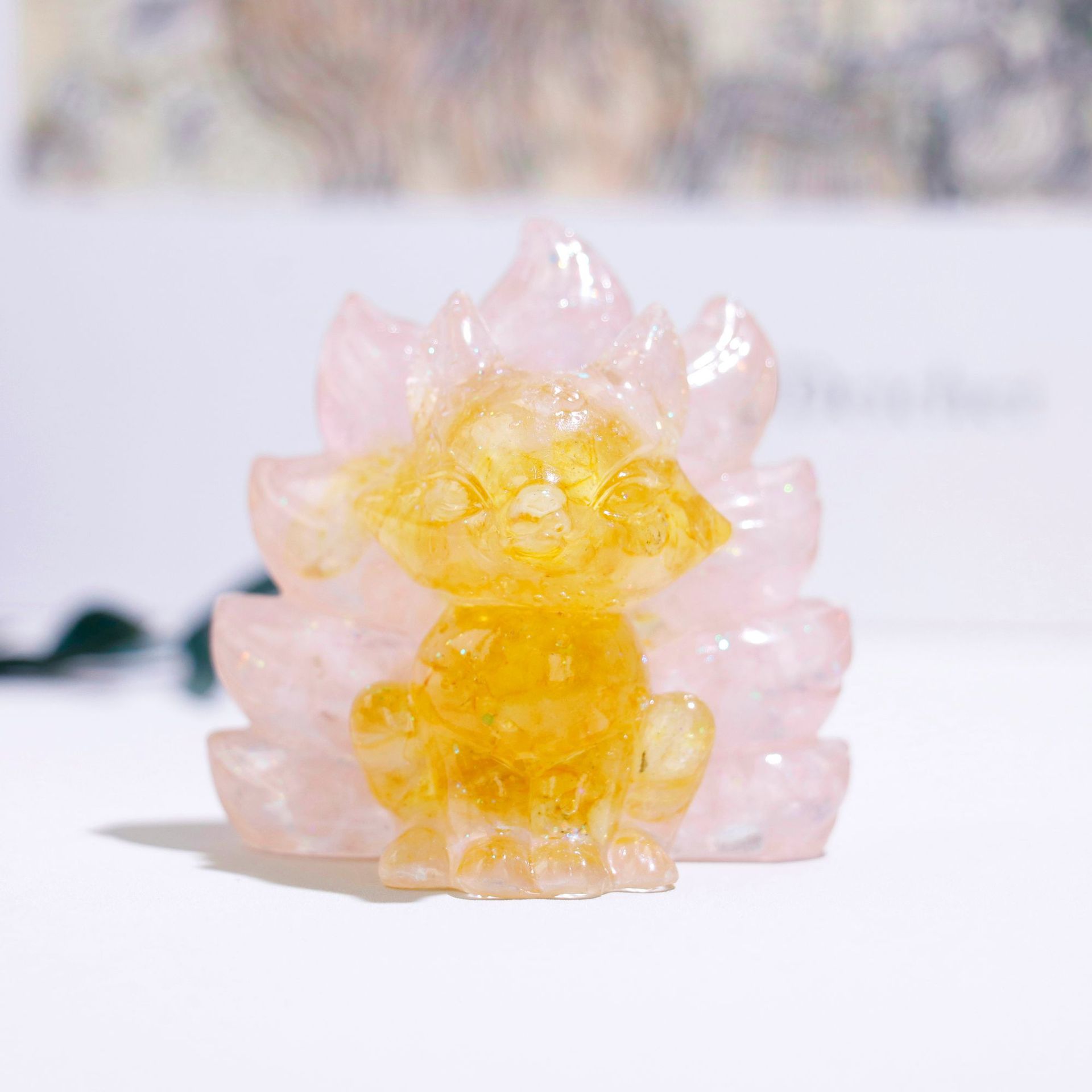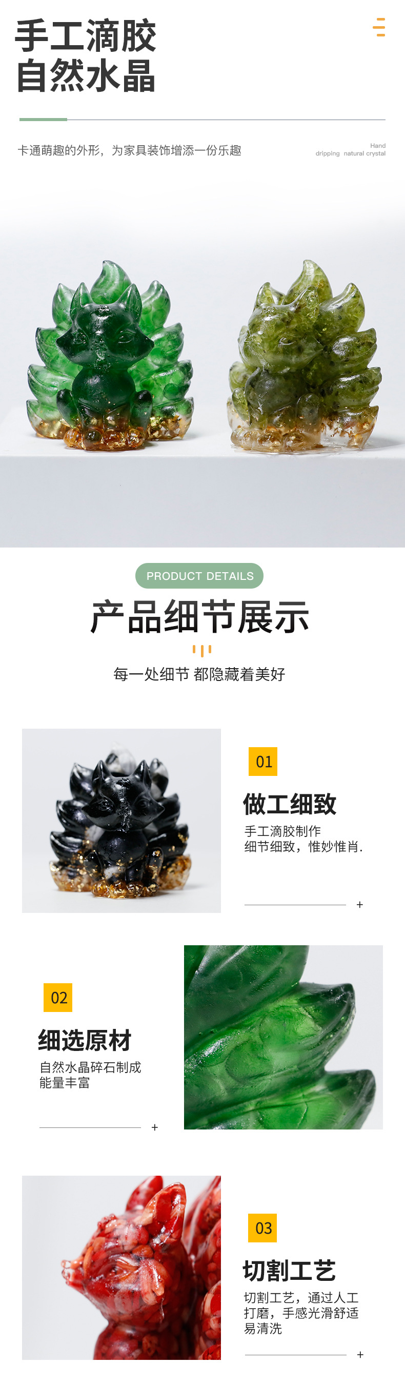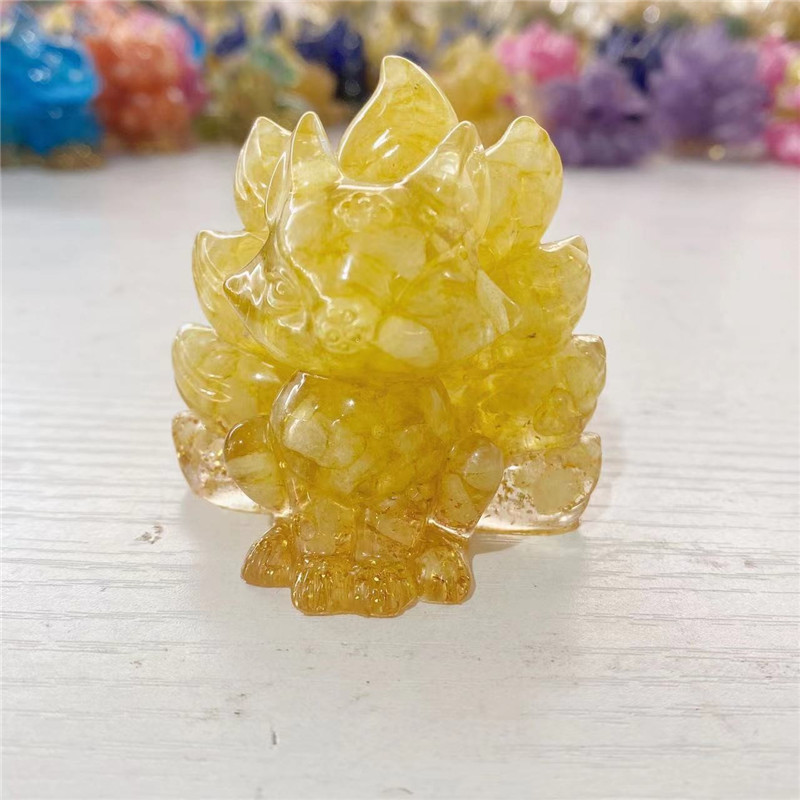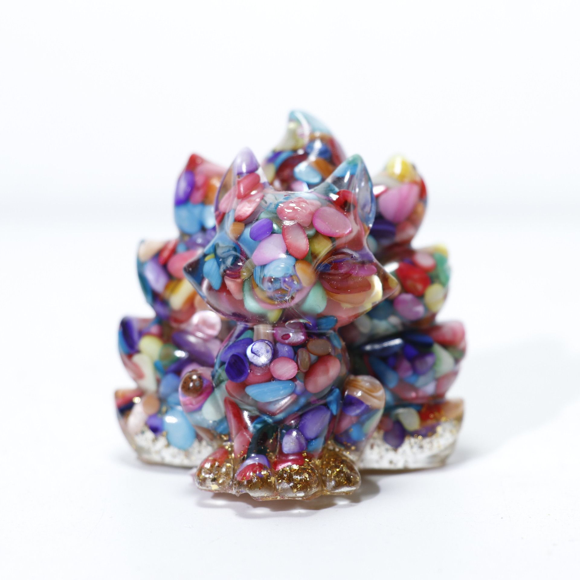 피닉스 나인 테일 폭스 장식품 유색 유리 크리스탈 자갈 접착제 떨어지는 공예품 복숭아 꽃 번영하는 결혼 커플 기념 선물스토어 가기