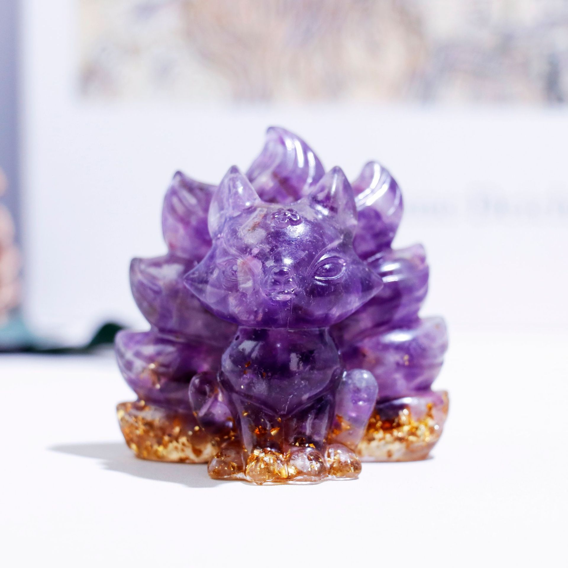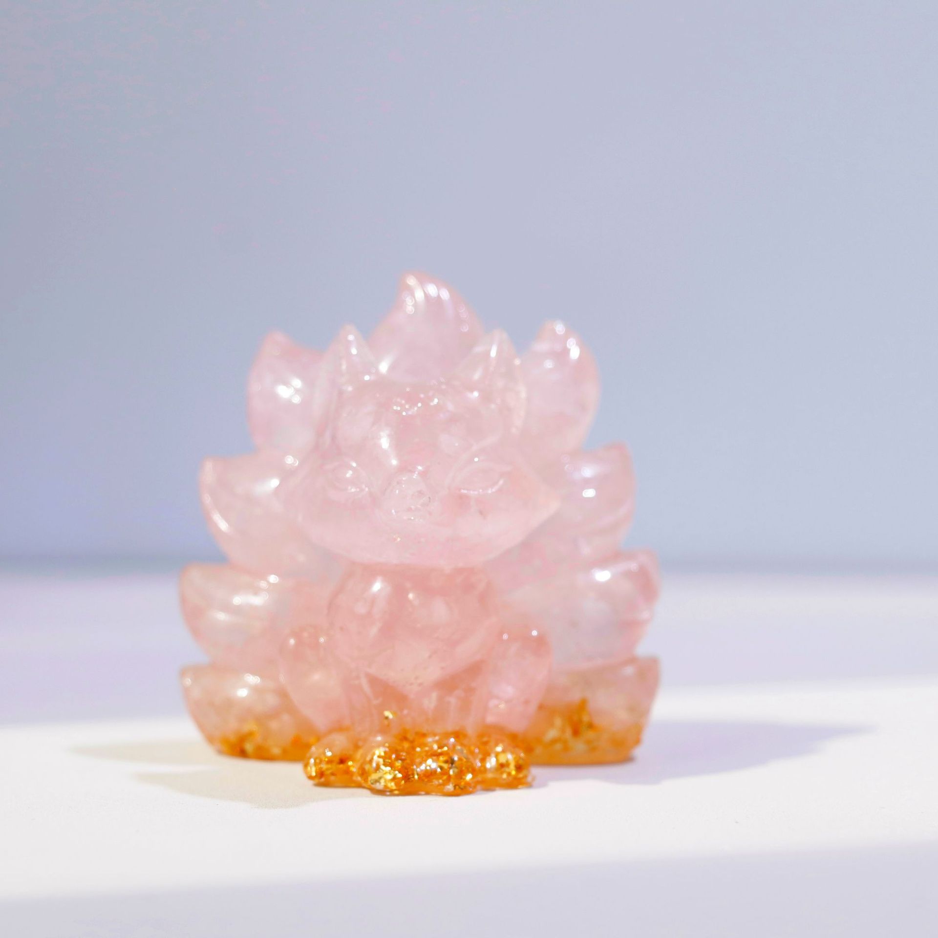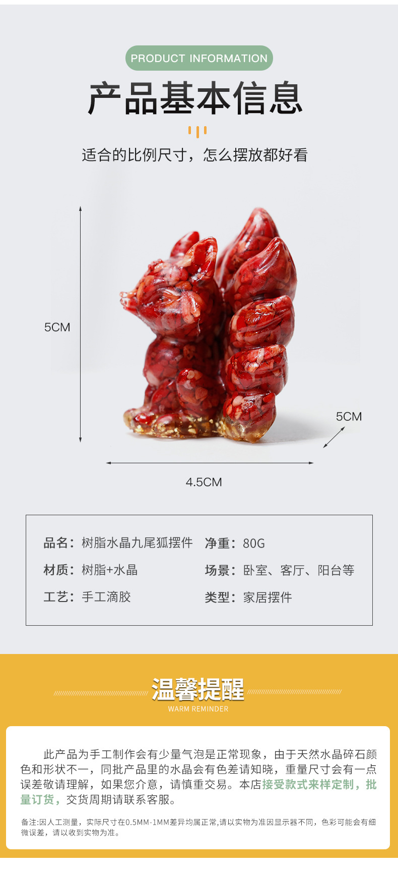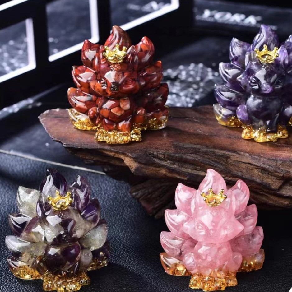 피닉스 나인 테일 폭스 장식품 유색 유리 크리스탈 자갈 접착제 떨어지는 공예품 복숭아 꽃 번영하는 결혼 커플 기념 선물스토어 가기