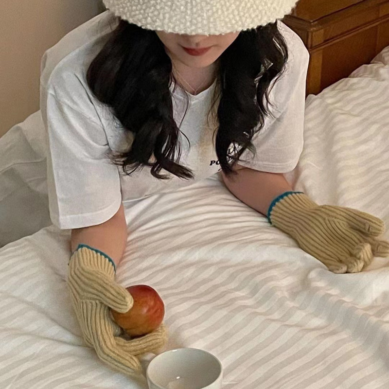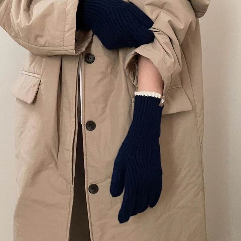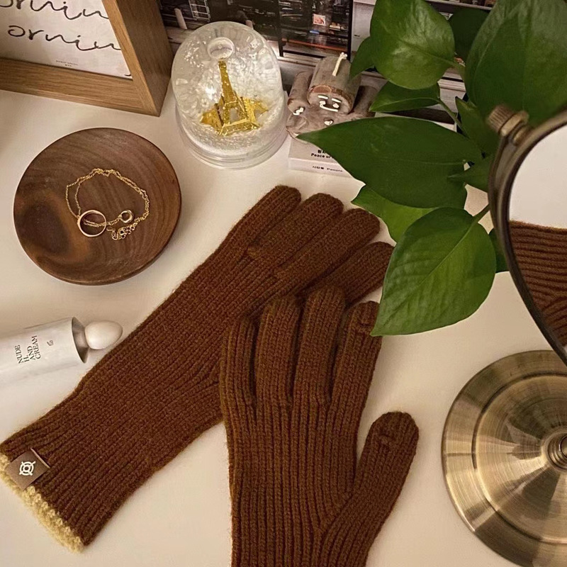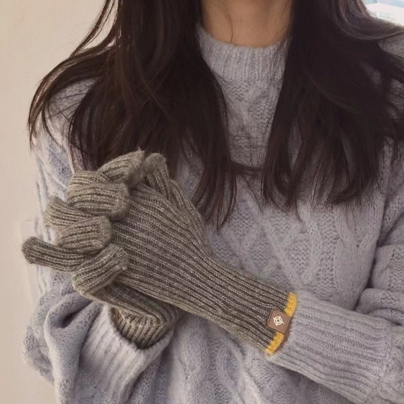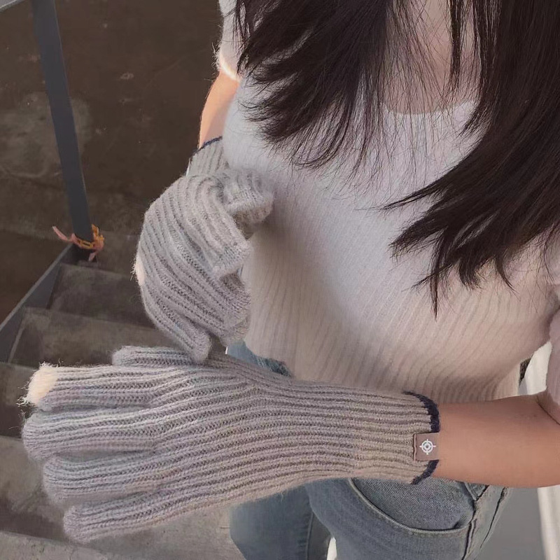 한국 스타일 인 블로거 같은 스타일 간단한 오픈 손가락 터치 스크린 니트 장갑 여성의 따뜻한 올 매치 커플의 모직 장갑