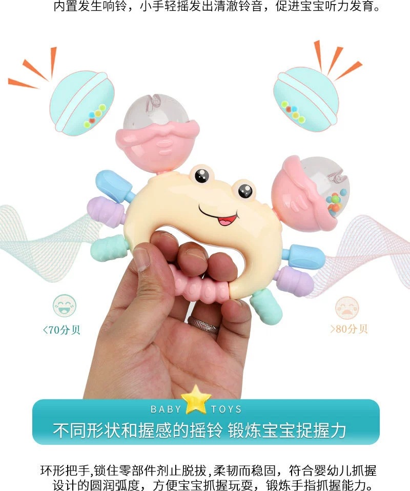 아기 아기 물린 부드러운 고무 게 벨 훈련 손 딸랑이 신생아 청력 시력 소리 장난감