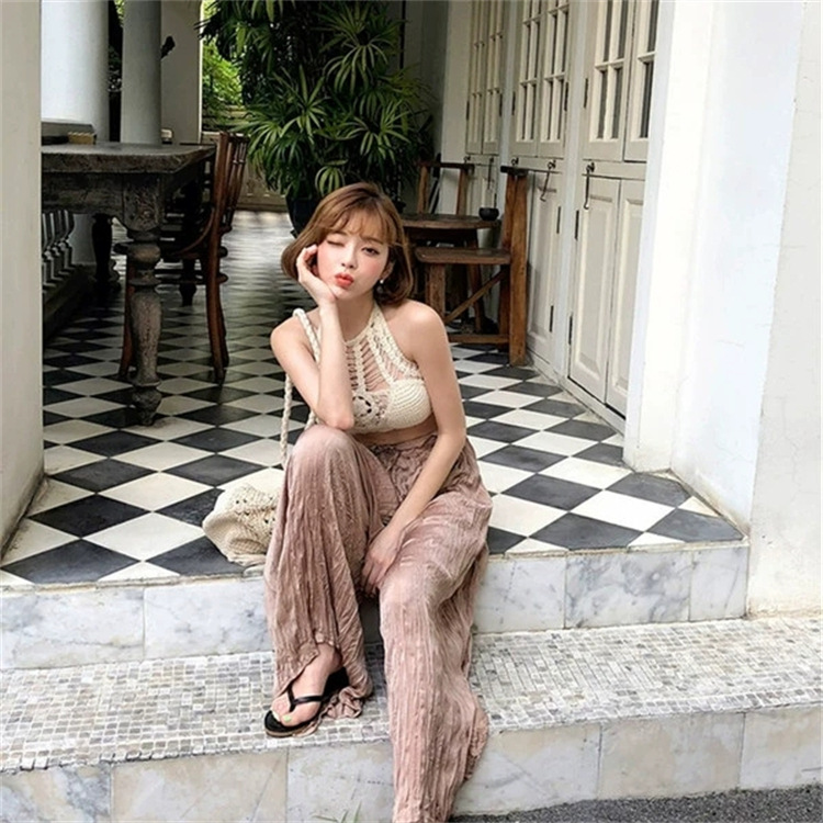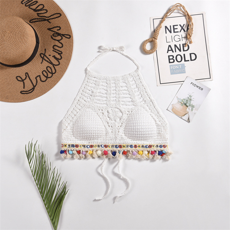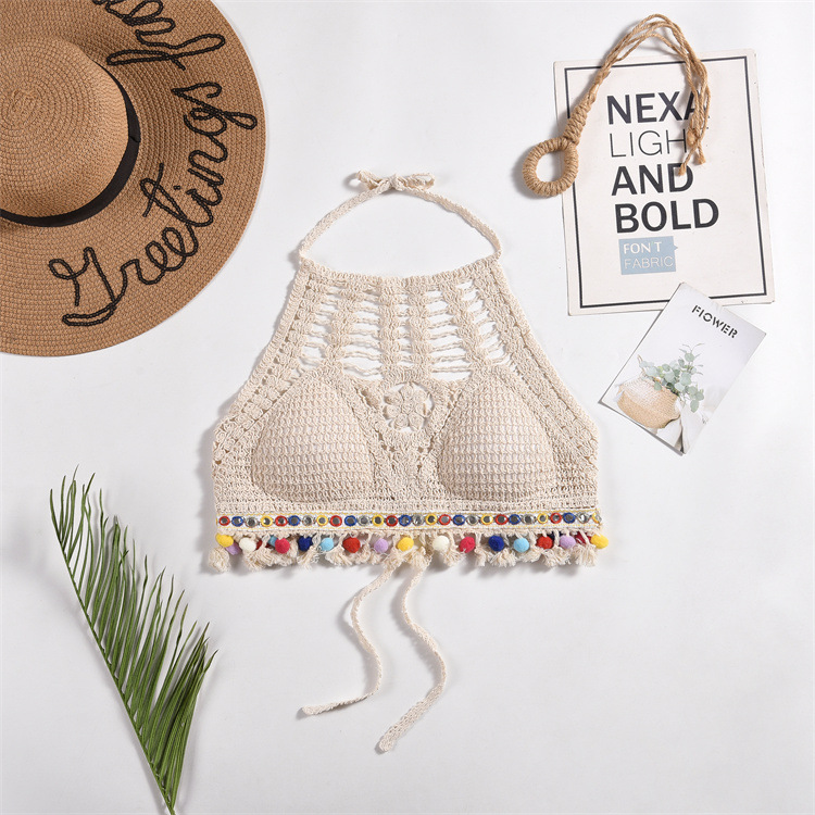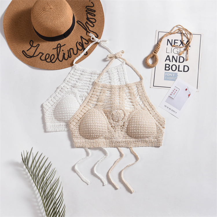 교수형 목 작은 조끼 여성의 여름 짧은 내부 새는 어깨 벨트 가슴 패드 상단 등이없는 중공 끈이없는 자수 조끼