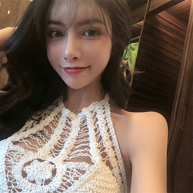 교수형 목 작은 조끼 여성의 여름 짧은 내부 새는 어깨 벨트 가슴 패드 상단 등이없는 중공 끈이없는 자수 조끼스토어 가기
