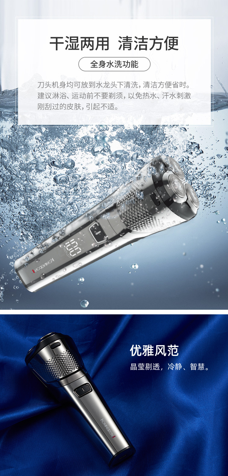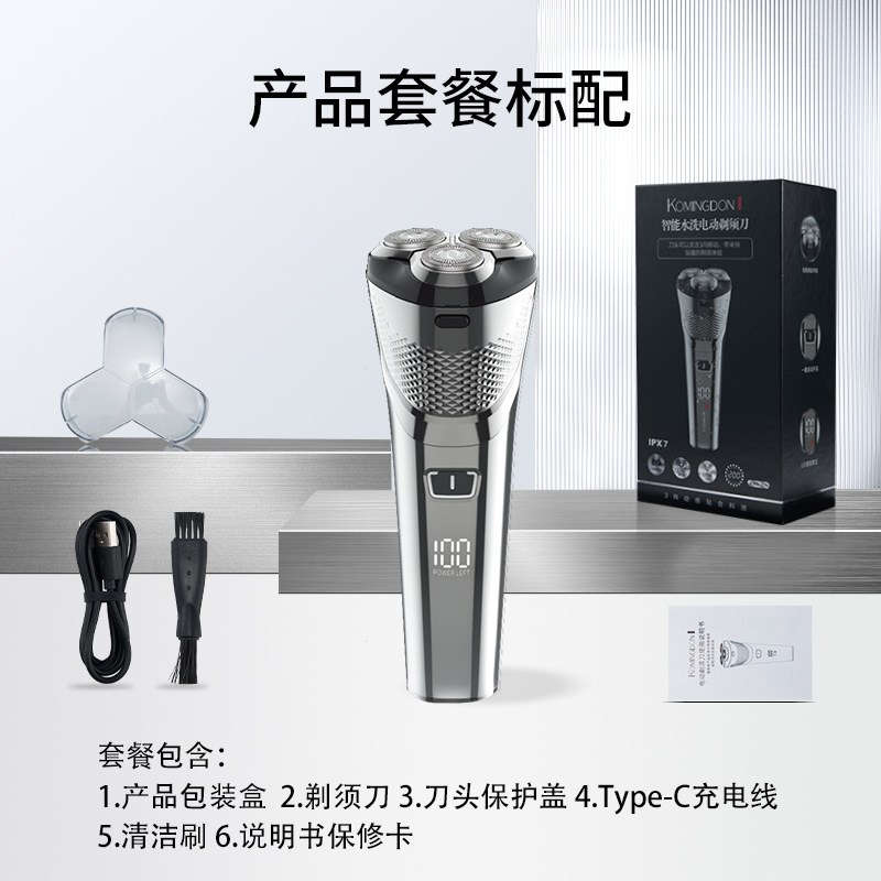 분배 및 도매용 회전식 3중날 남성용 전기면도기, 충전식, 물세척 가능, 휴대용 면도기스토어 가기