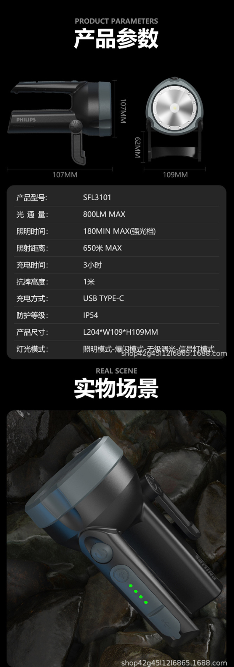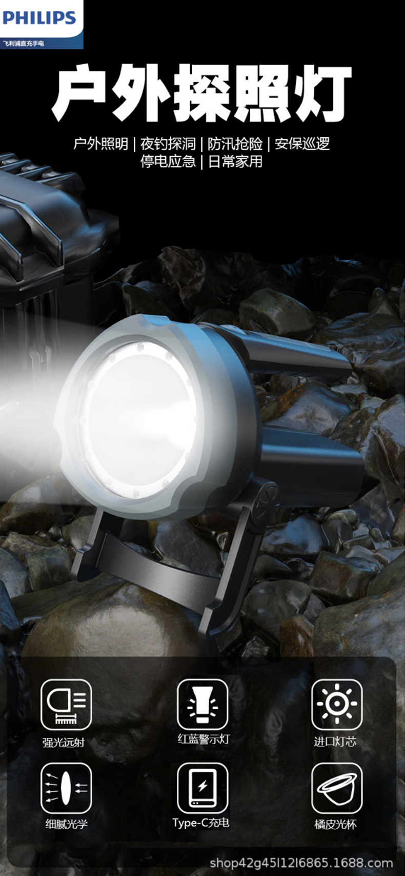 국경 간 손전등 SFL3101 비상 탐조등 LED 야외 탐조등 충전식 다기능 휴대용 램프스토어 가기