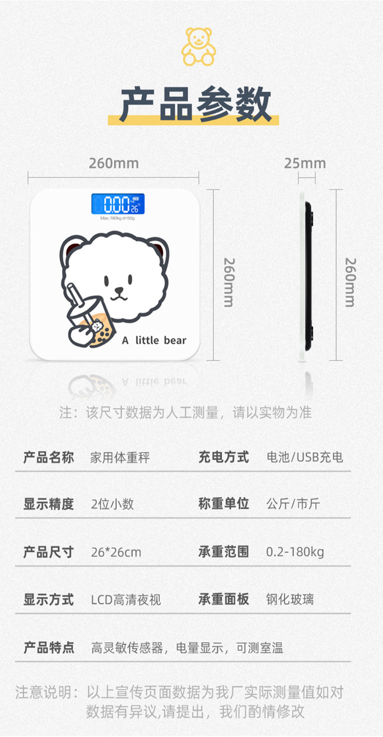 헤어 가정용 귀여운 충전식 계량 스케일 성인 내구성 전자 스케일 바디 스케일 지능형 전자 계량 규모의 세대스토어 가기