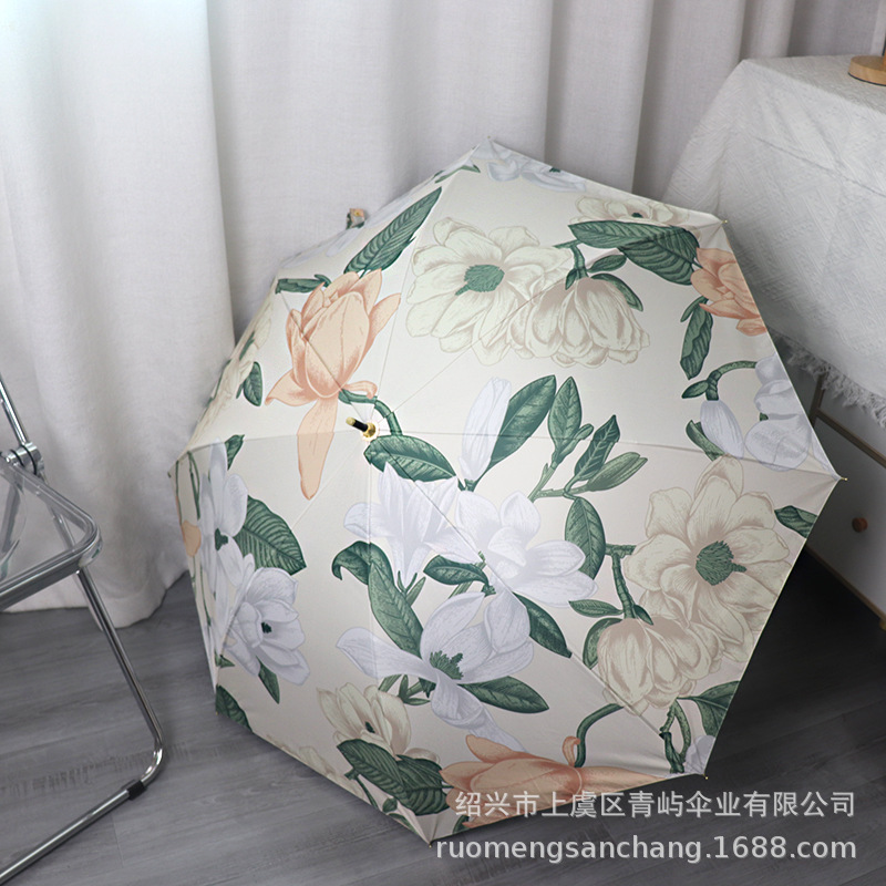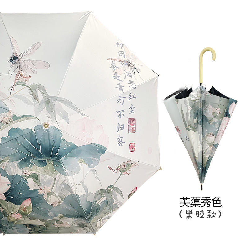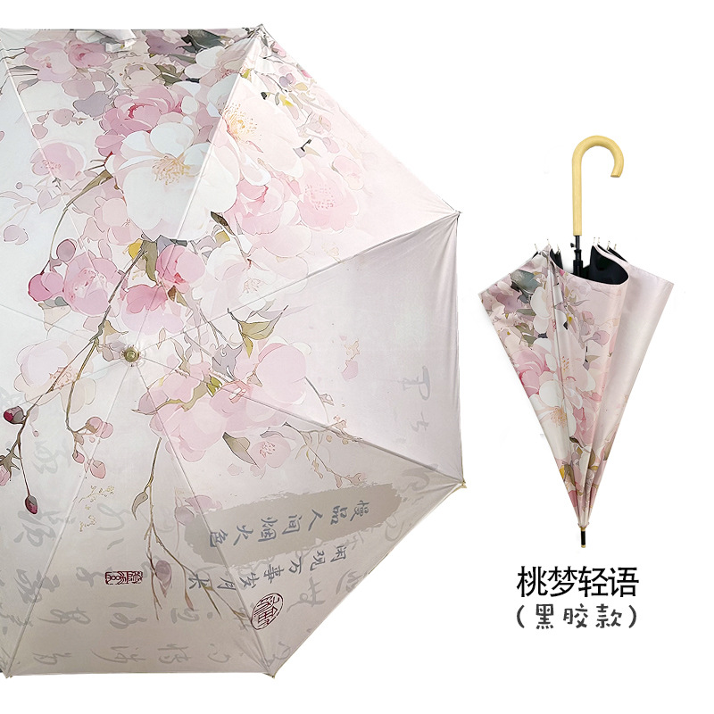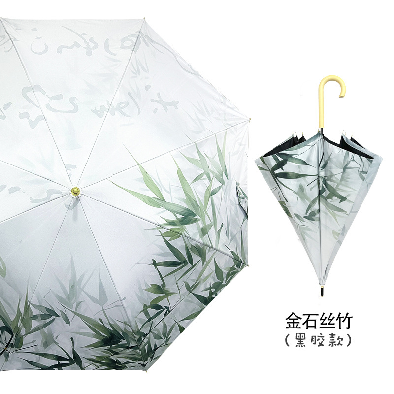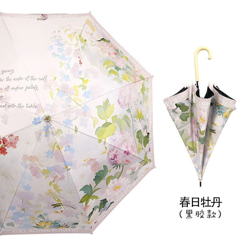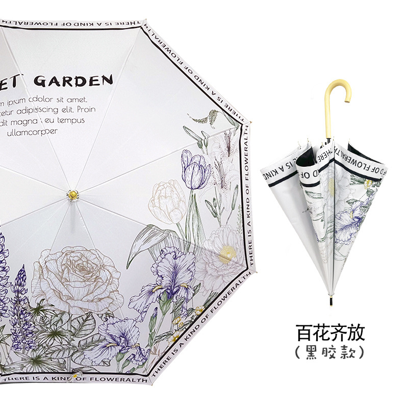 레트로 숲 꽃 스트레이트 로드 우산 블랙 고무 선 스크린 UV 비 이중 사용 긴 손잡이 우산 여성 강화 방풍