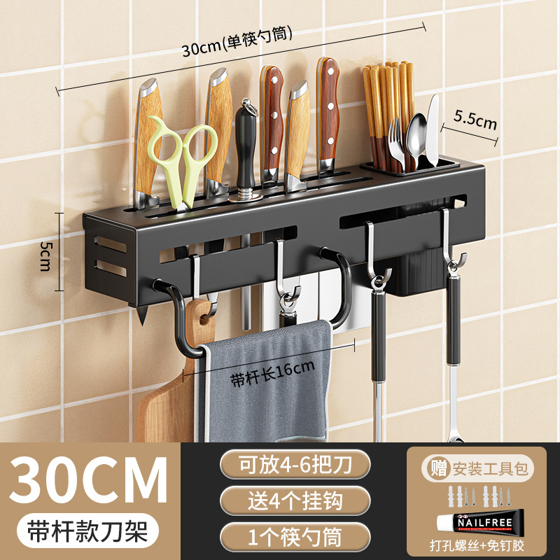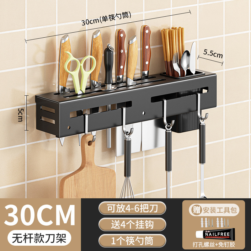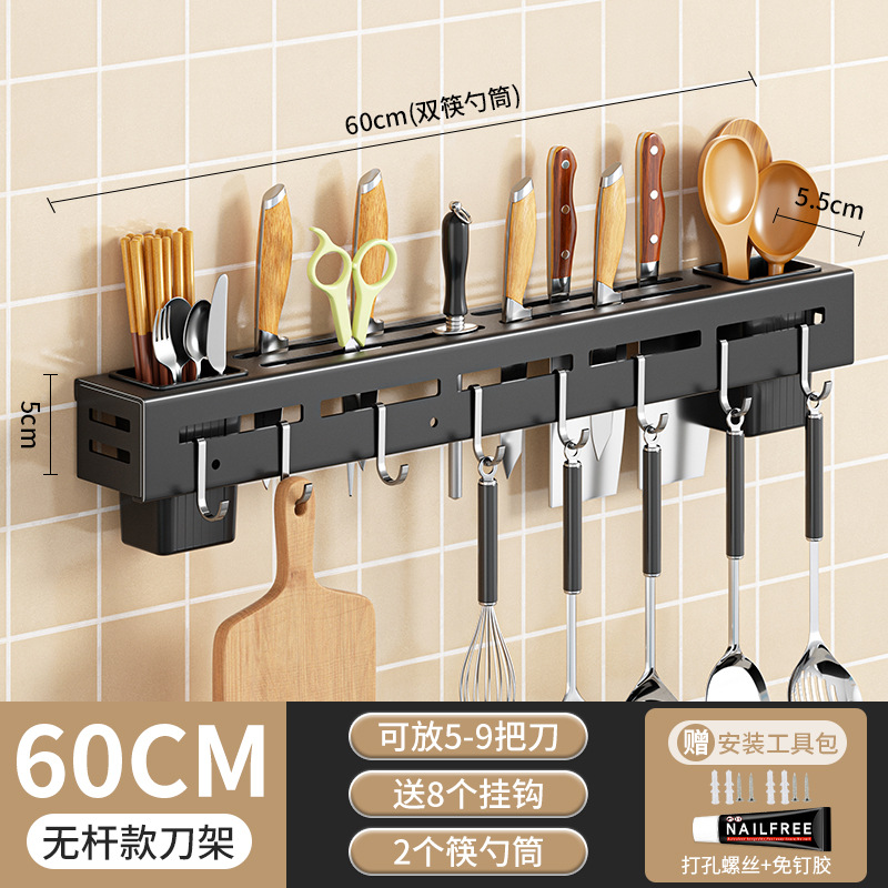 칼걸이 수납 선반 벽걸이형 칼 보관대 다기능 젓가락통 주방 무타공 수납 걸이 해외배송