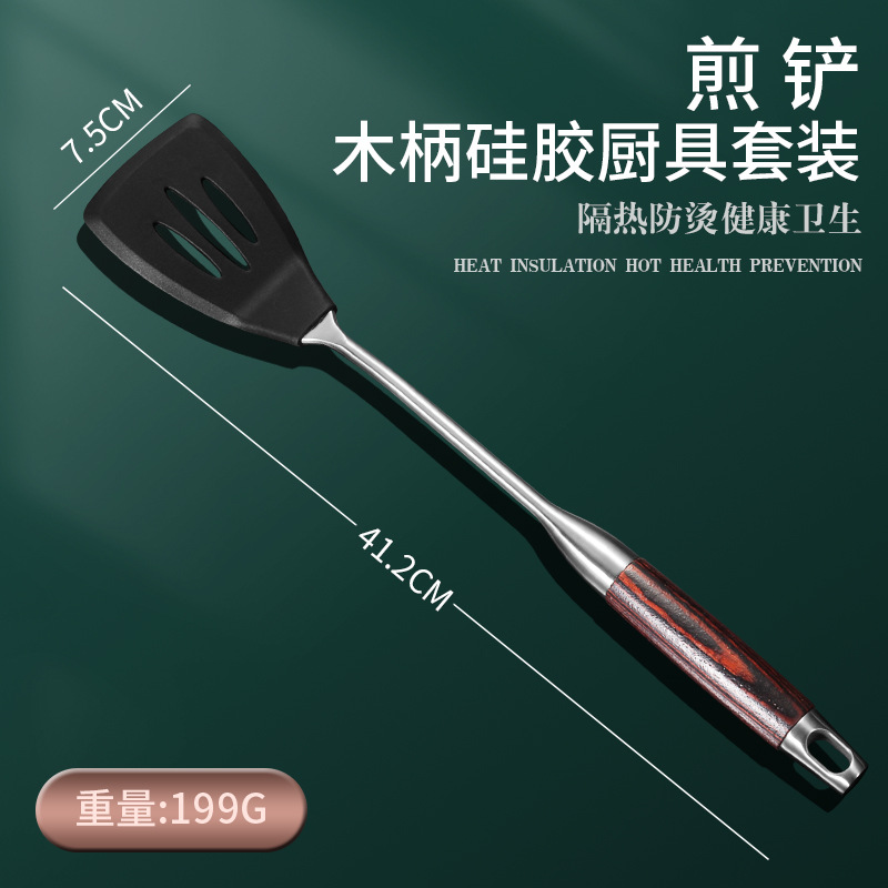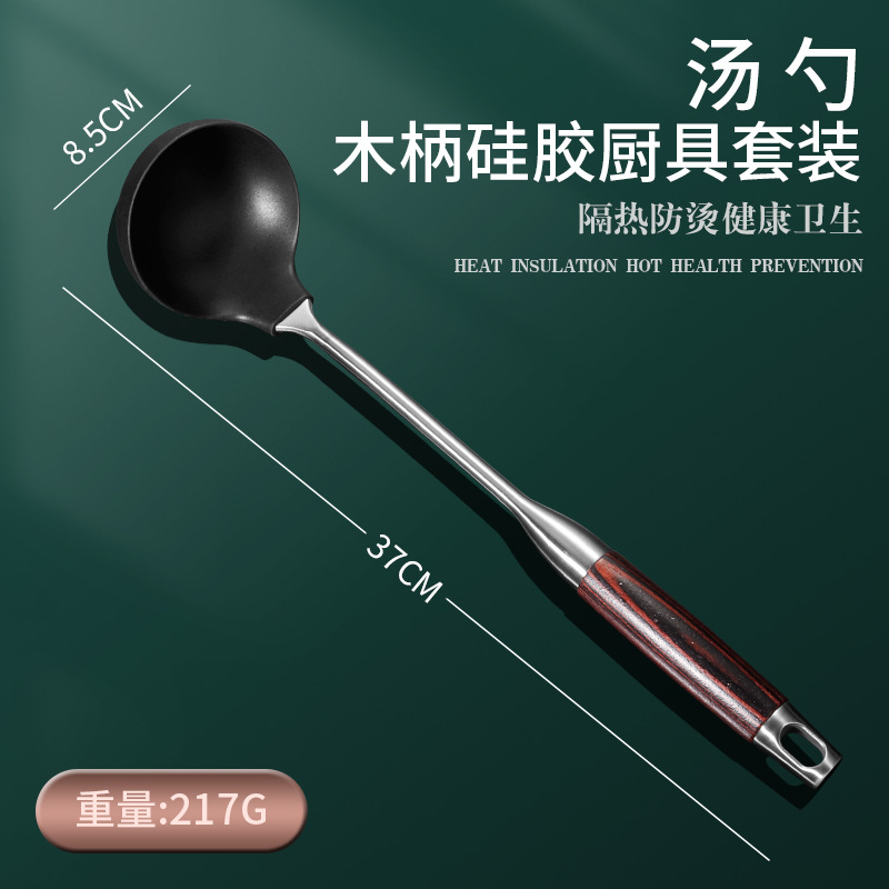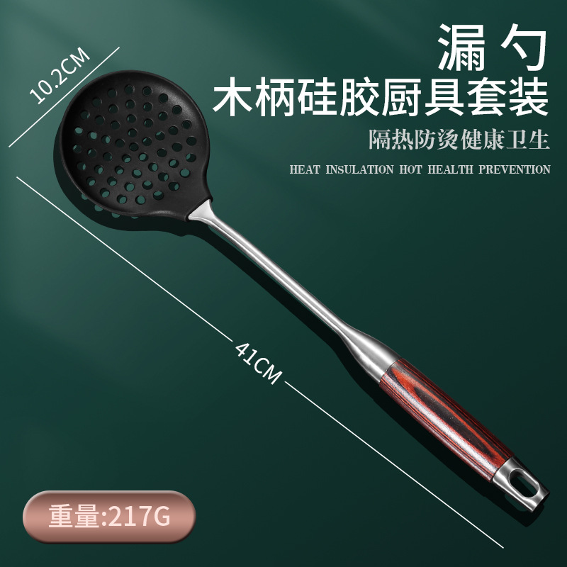 Daoqi 304 스테인레스 스틸 실리콘 주걱 가정용 주방 도구 고온 저항 붙지 않는 팬 나무 손잡이 요리 숟가락 주걱