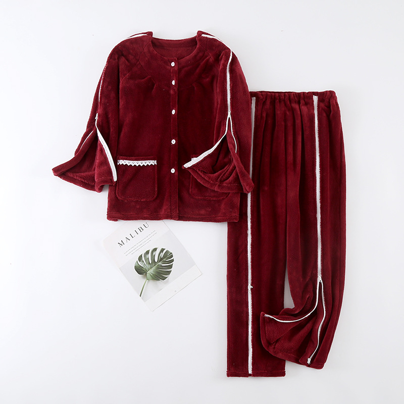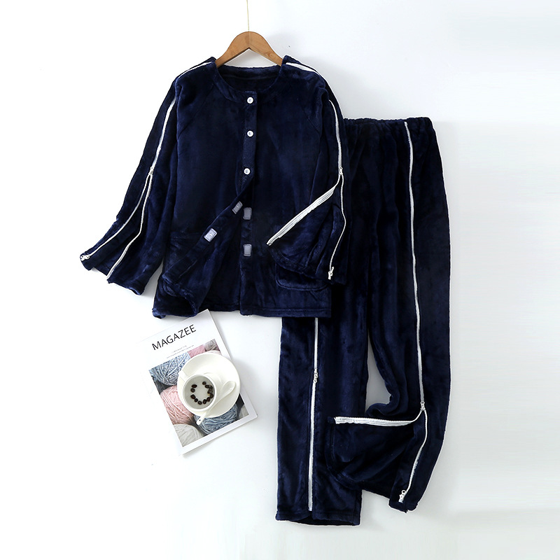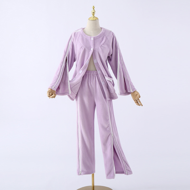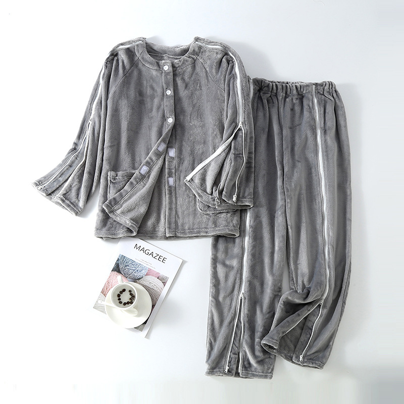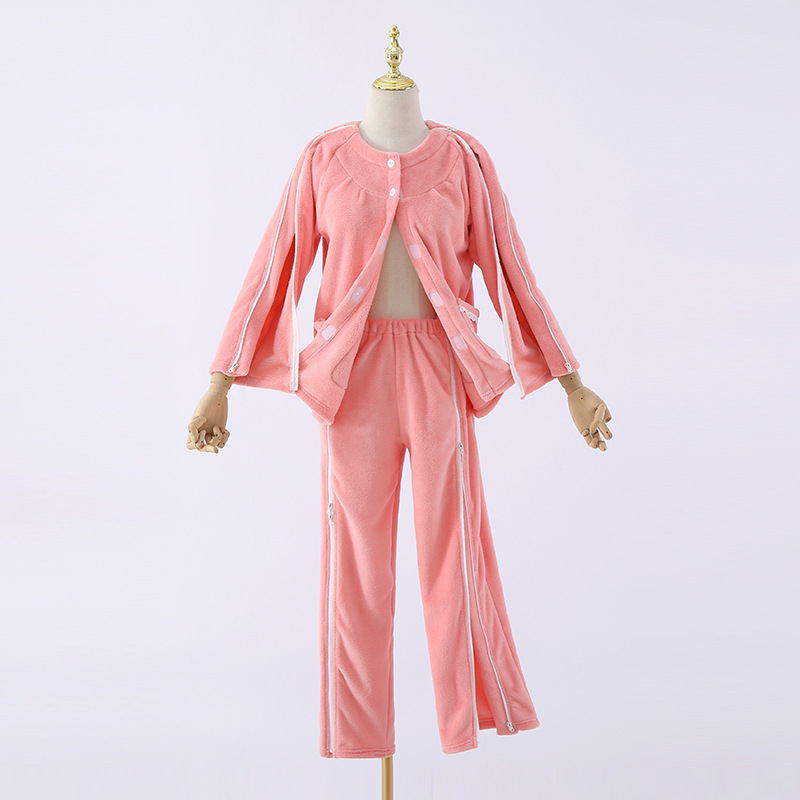 새로운 산호 벨벳 지퍼 관리 의류 마비 골절 잠옷 병원 의류 원피스 착용 및 이륙 편리한 세트 도매