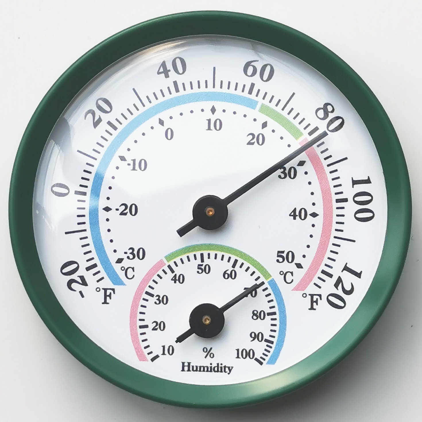 产品名称:直径57mm温湿度计(全铝壳绿色)