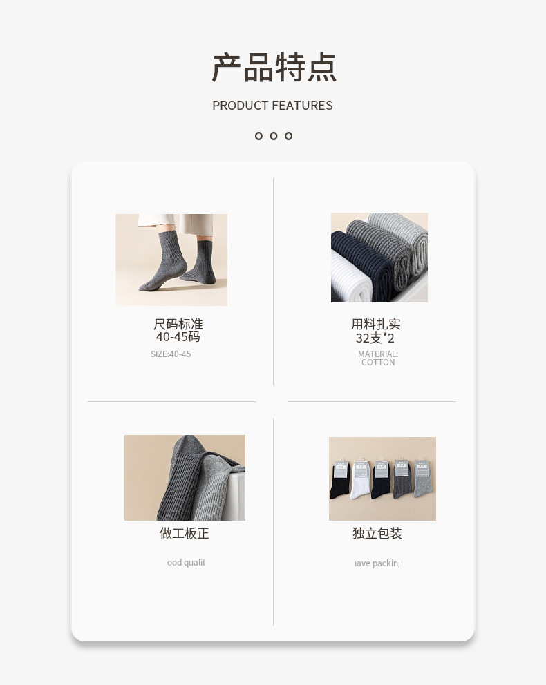 【纯棉的材质 吸汗透气 不闷脚 不臭脚 不褪色 不缩水 不变形 不易起球】