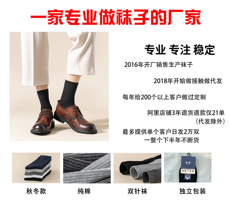 双针男士商务袜 里外都是棉 纯棉带独立包装发货